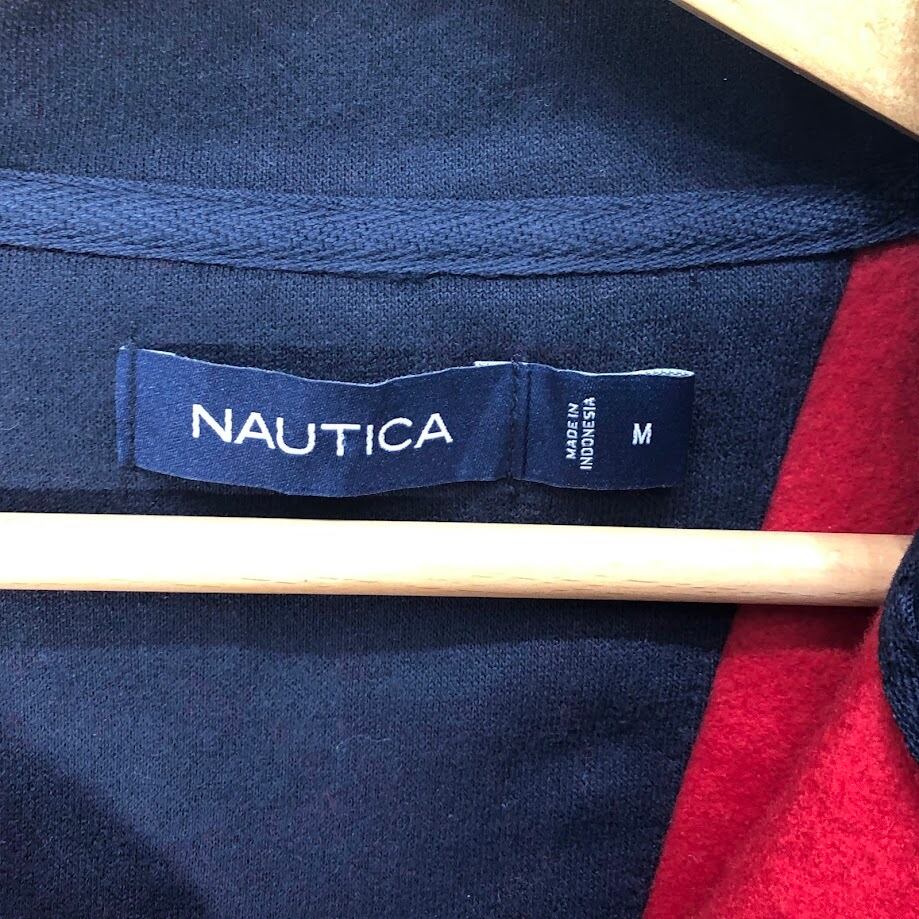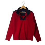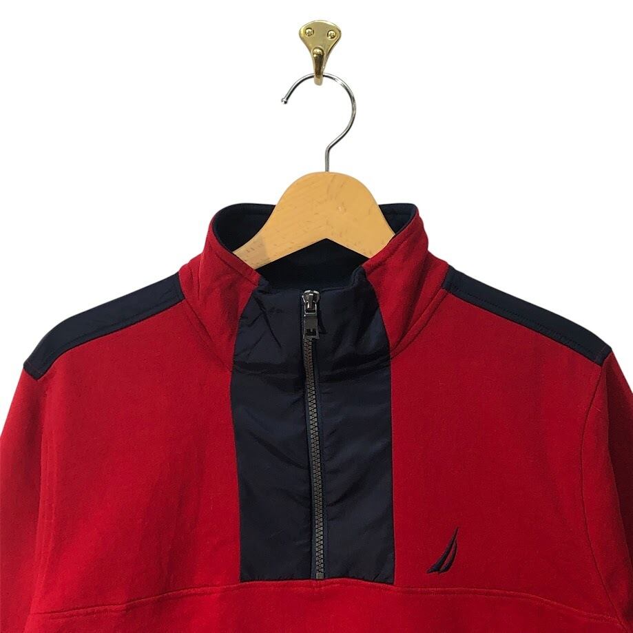 NAUTICA ノーティカ プルオーバー ハーフジップ スウェット袖プリント ナイロン切返し インドネシア製 Mサイズ レッド ネイビー