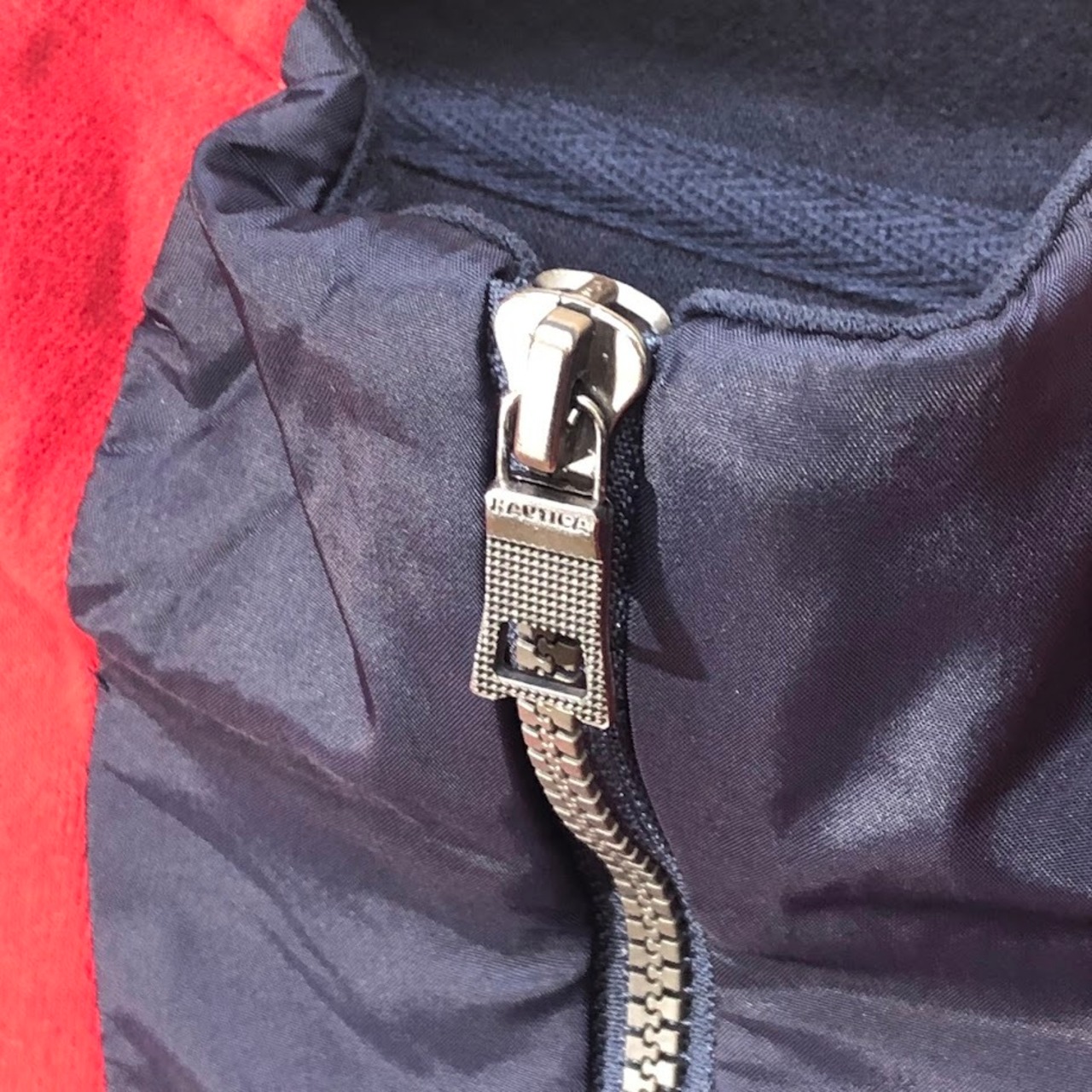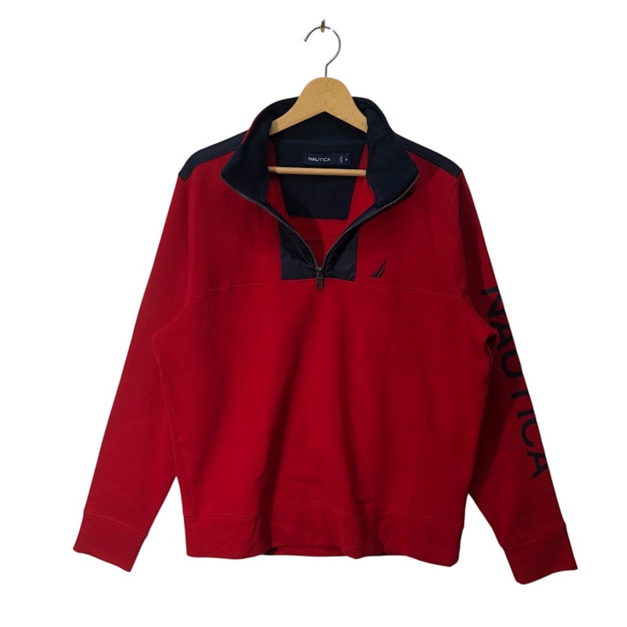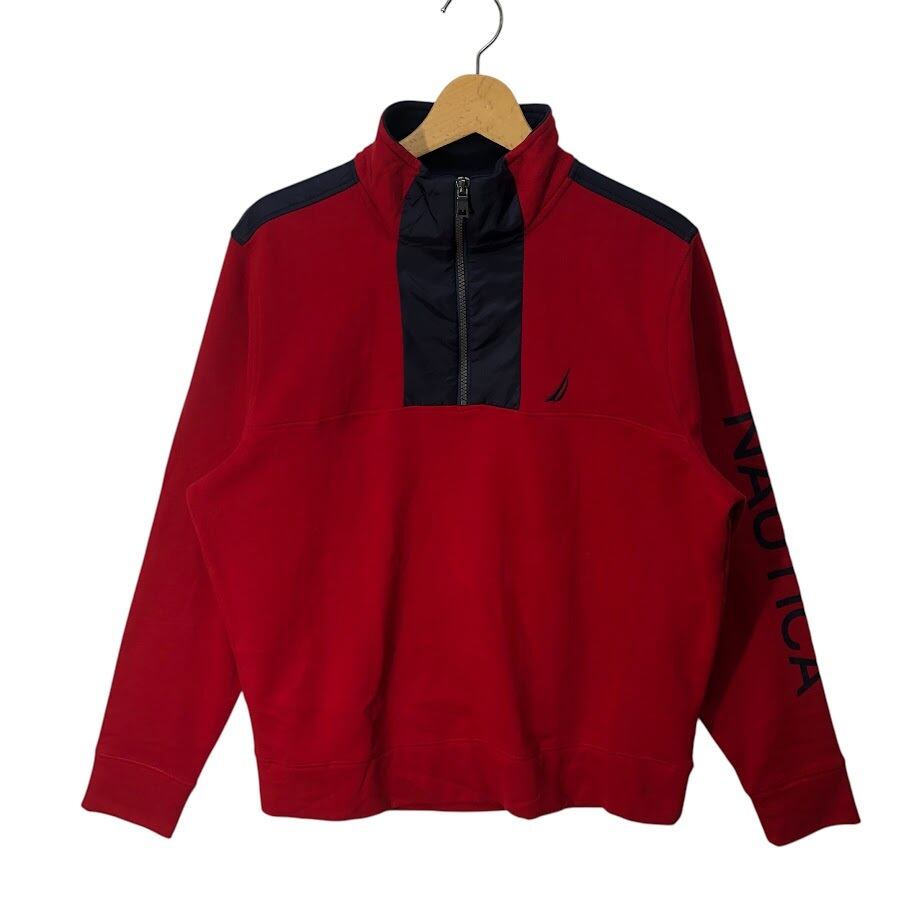 商品名:NAUTICA ノーティカ プルオーバー ハーフジップ スウェット袖プリント ナイロン切返し インドネシア製 Mサイズ レッド ネイビー