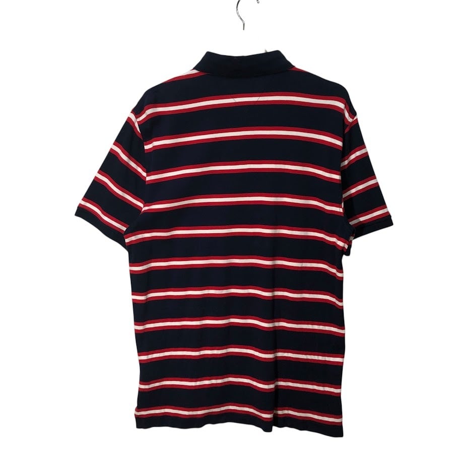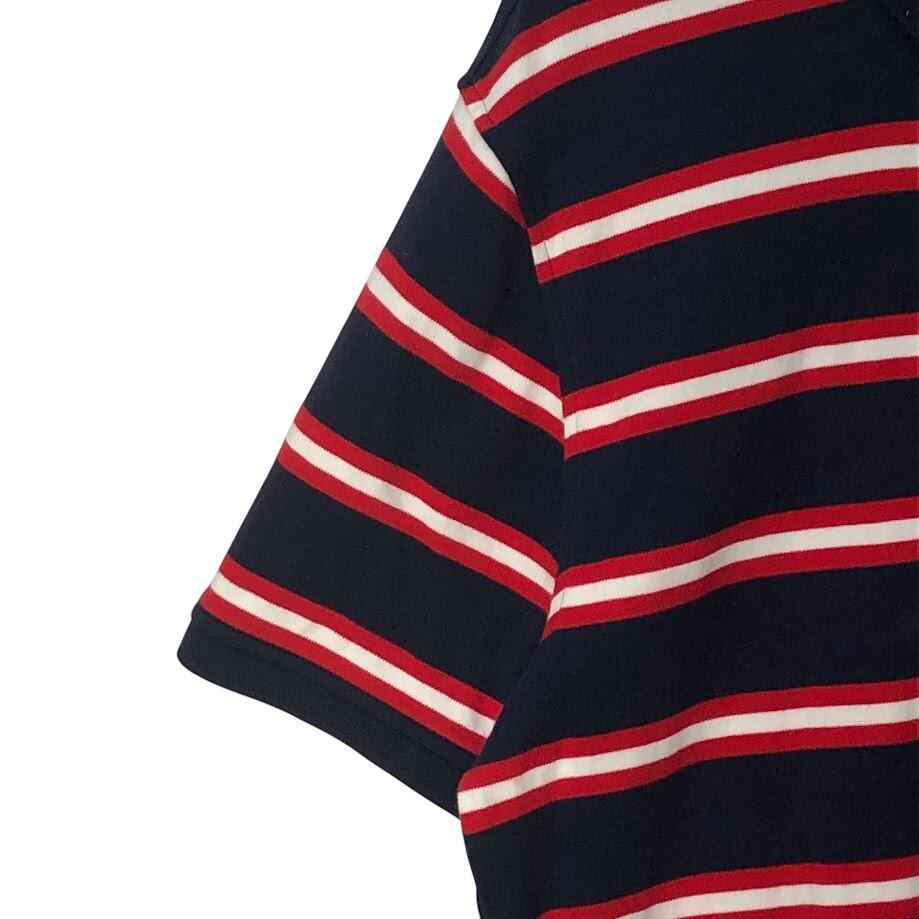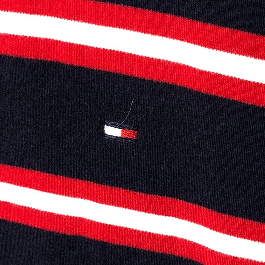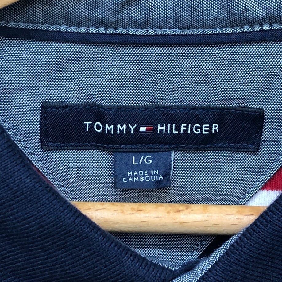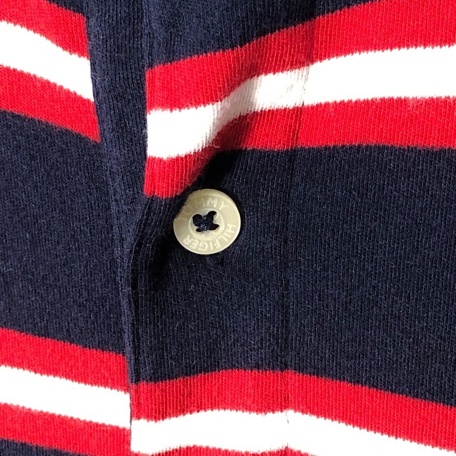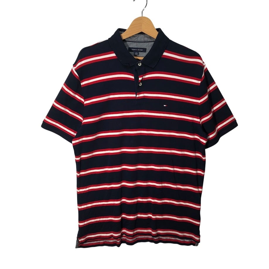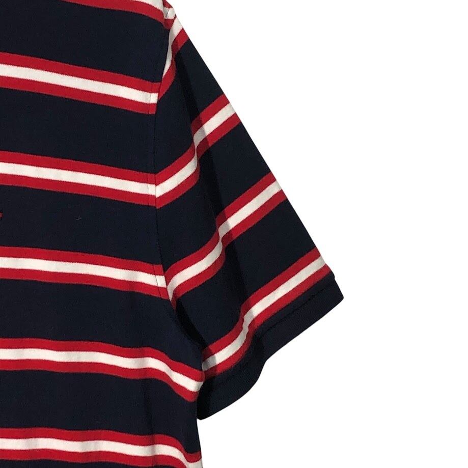 TOMMY HILFIGER トミーヒルフィガー 半袖シャツ ボタンダウンシャツ ボーダー柄 ワンポイントロゴ カンボジア製 Lサイズ レッド ネイビー ホワイト