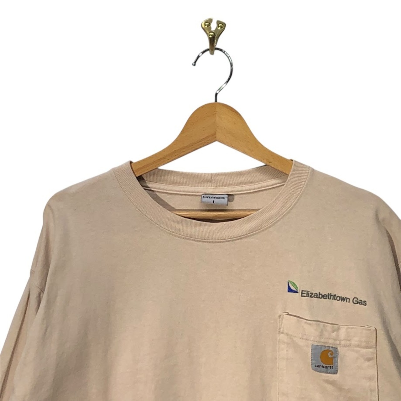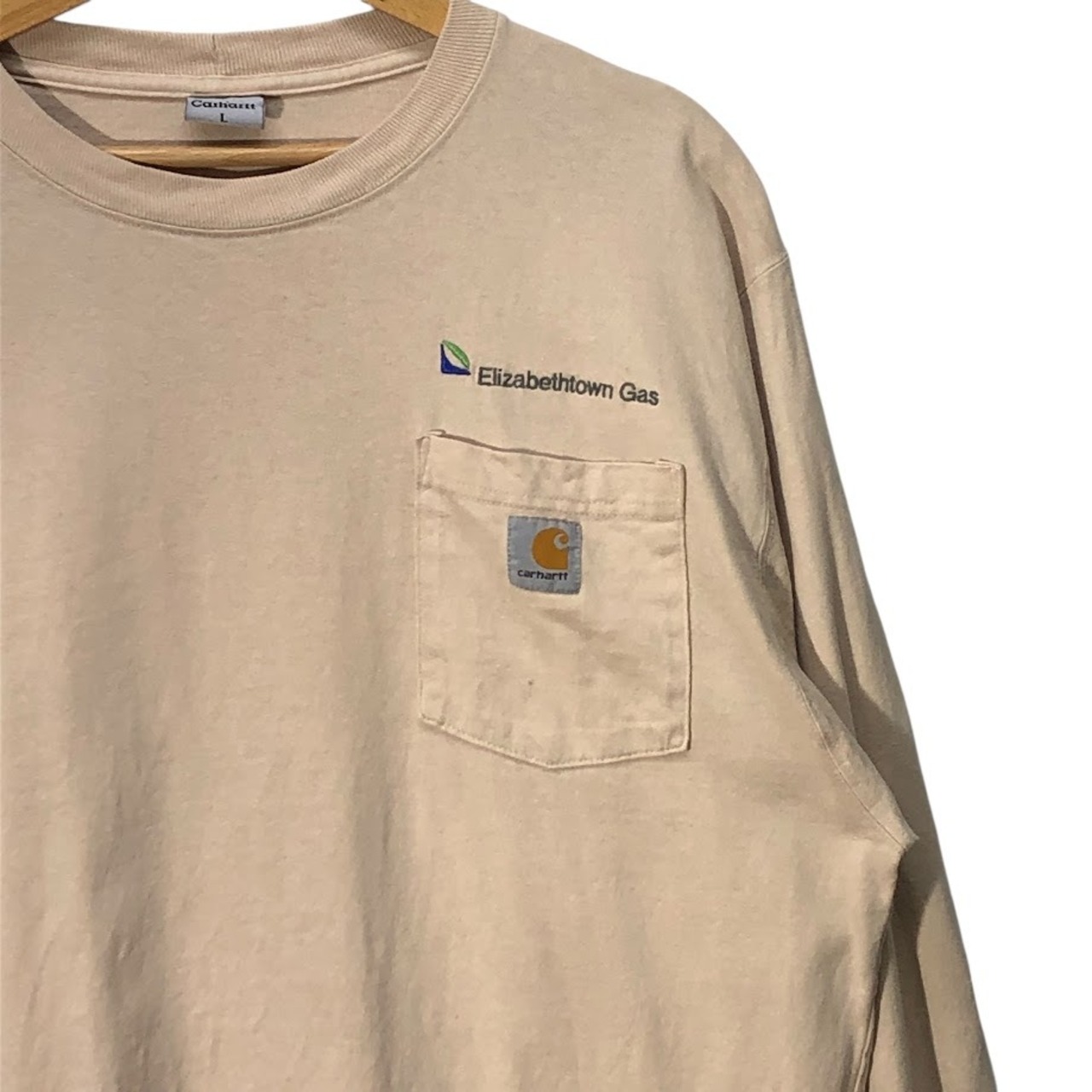 商品名:Carhartt カーハート トレーナー ロンT Tシャツ ポケット 企業ロゴ 刺繍 Honduras製 Lサイズ アッシュピンク