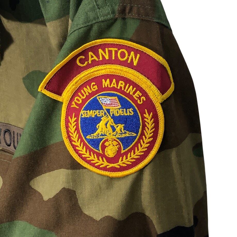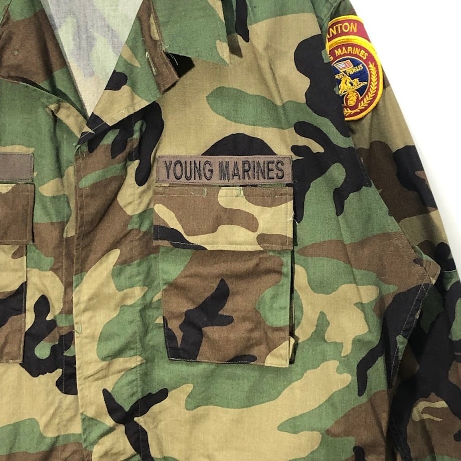 アメリカ海兵隊 Young Maries ウッドランド コンバットジャケット カモ ミリタリー フィールドシャツジャケット LARGEサイズ グリーン カーキ ブラウン