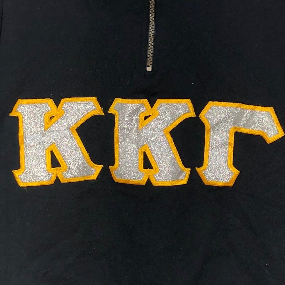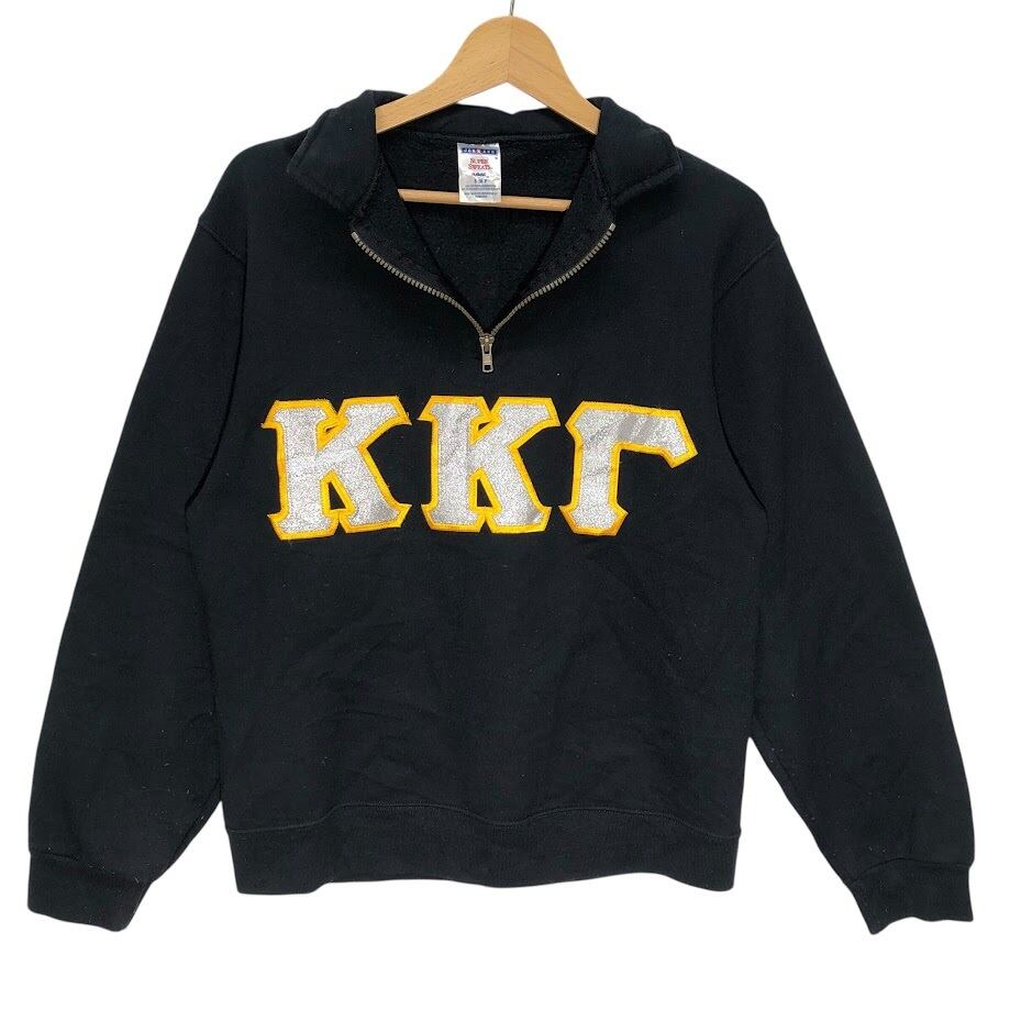 90's vintage 90年代 ヴィンテージ JERZEES ジャージーズ KKG カレッジ ギリシャ文字 ハーフジップ スウェット トレーナー 長袖 フロント刺繡 Honduras製 Sサイズ ブラック