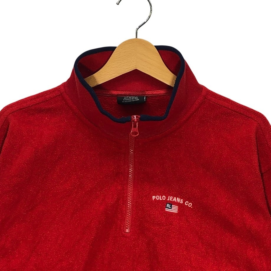 POLO JEANS CO. RALPH LAUREN ポロジーンズラルフローレン フリースプルオーバー ハーフジップ 長袖 ワンポイント刺繡 オーバーサイズ ビッグシルエット Thailand製 XLサイズ レッド
