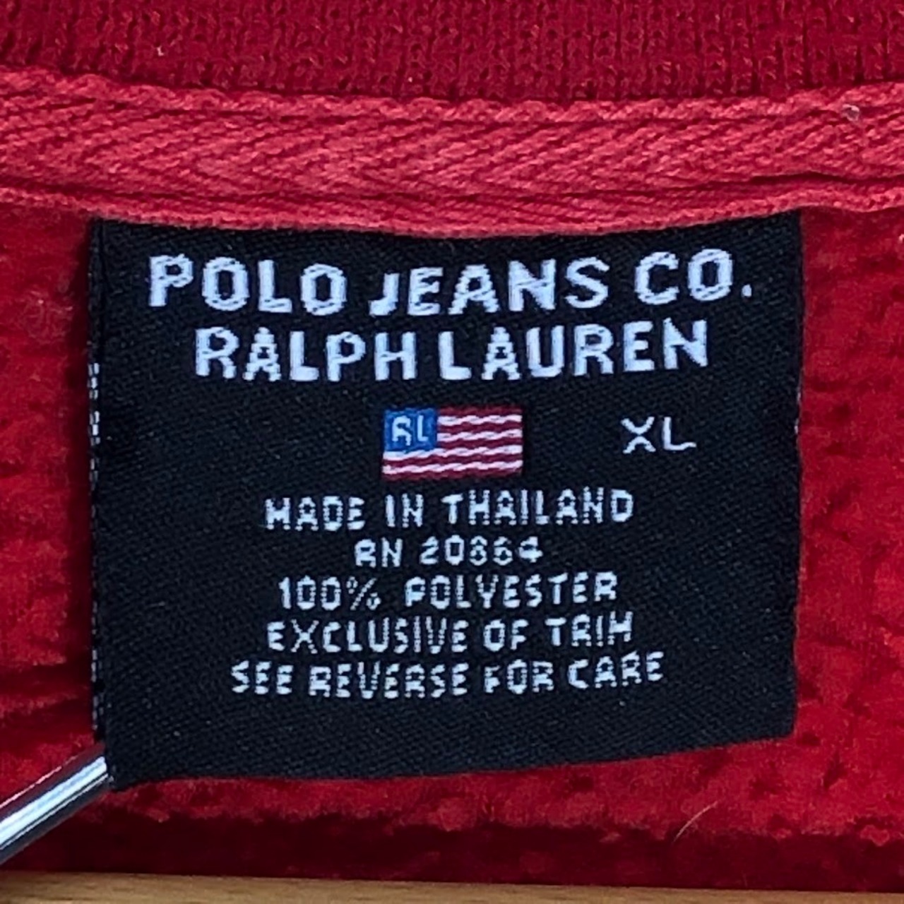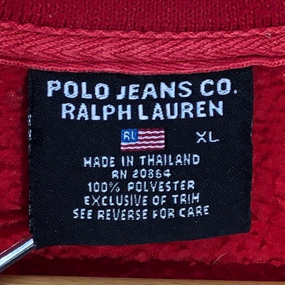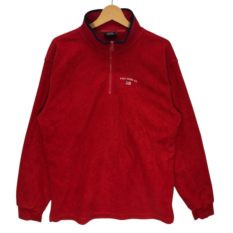 商品名:POLO JEANS CO. RALPH LAUREN ポロジーンズラルフローレン フリースプルオーバー ハーフジップ 長袖 ワンポイント刺繡 オーバーサイズ ビッグシルエット Thailand製 XLサイズ レッド