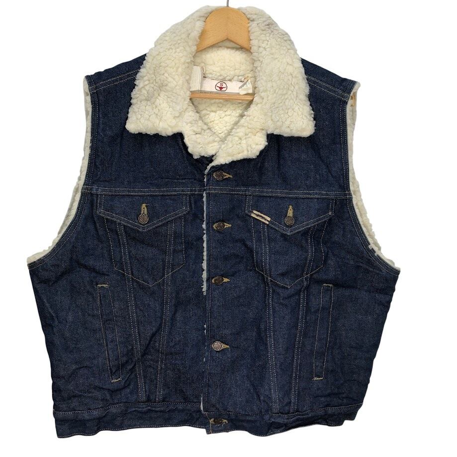 商品名:70's vintage 70年代 ヴィンテージ SHEPLERS THE WORLD'S LARGEST WESTERN STORES デニムボアベスト USA製 XLサイズ ブルー ホワイト