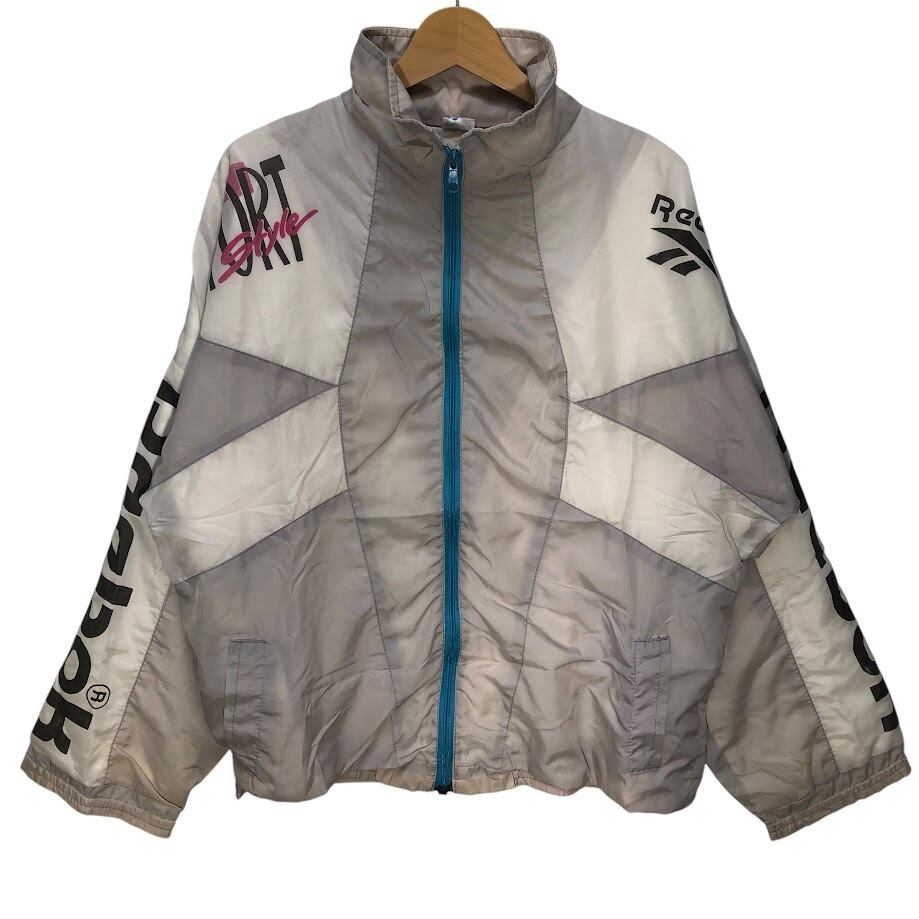 商品名:90's vintage 90年代 ヴィンテージ Reebok リーボック ナイロンジャケット プリントロゴ XXLサイズ ホワイトベージュ