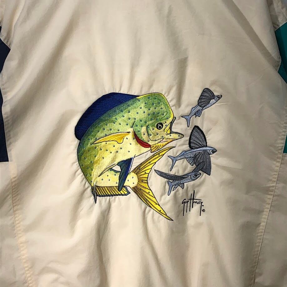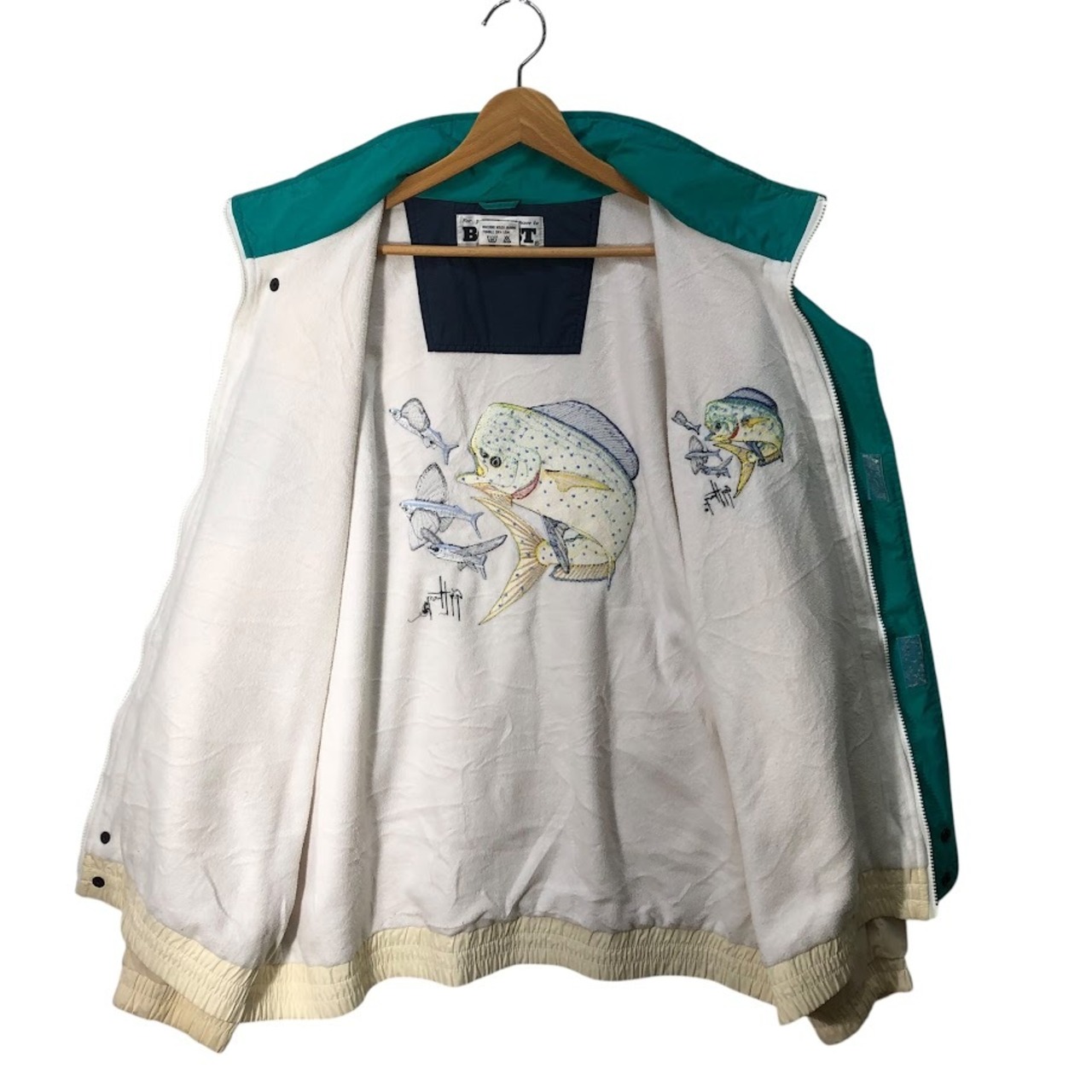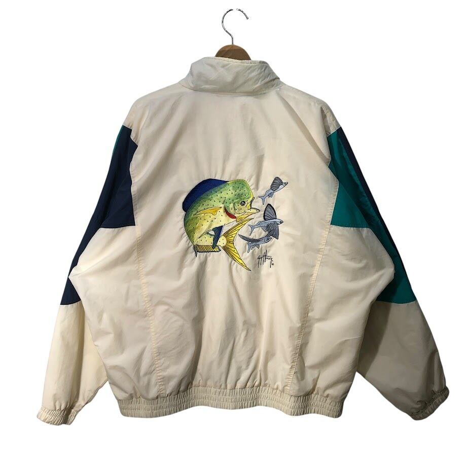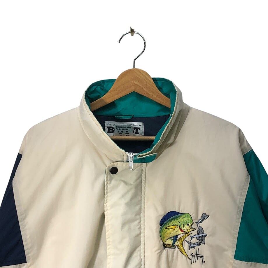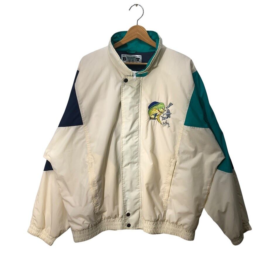 BOAST ボースト ナイロンジャケット ウインドブレーカー ブルゾン ジャンパー フィッシュ バック刺繍 TAIWAN製 XLサイズ ホワイト ライトグリーン