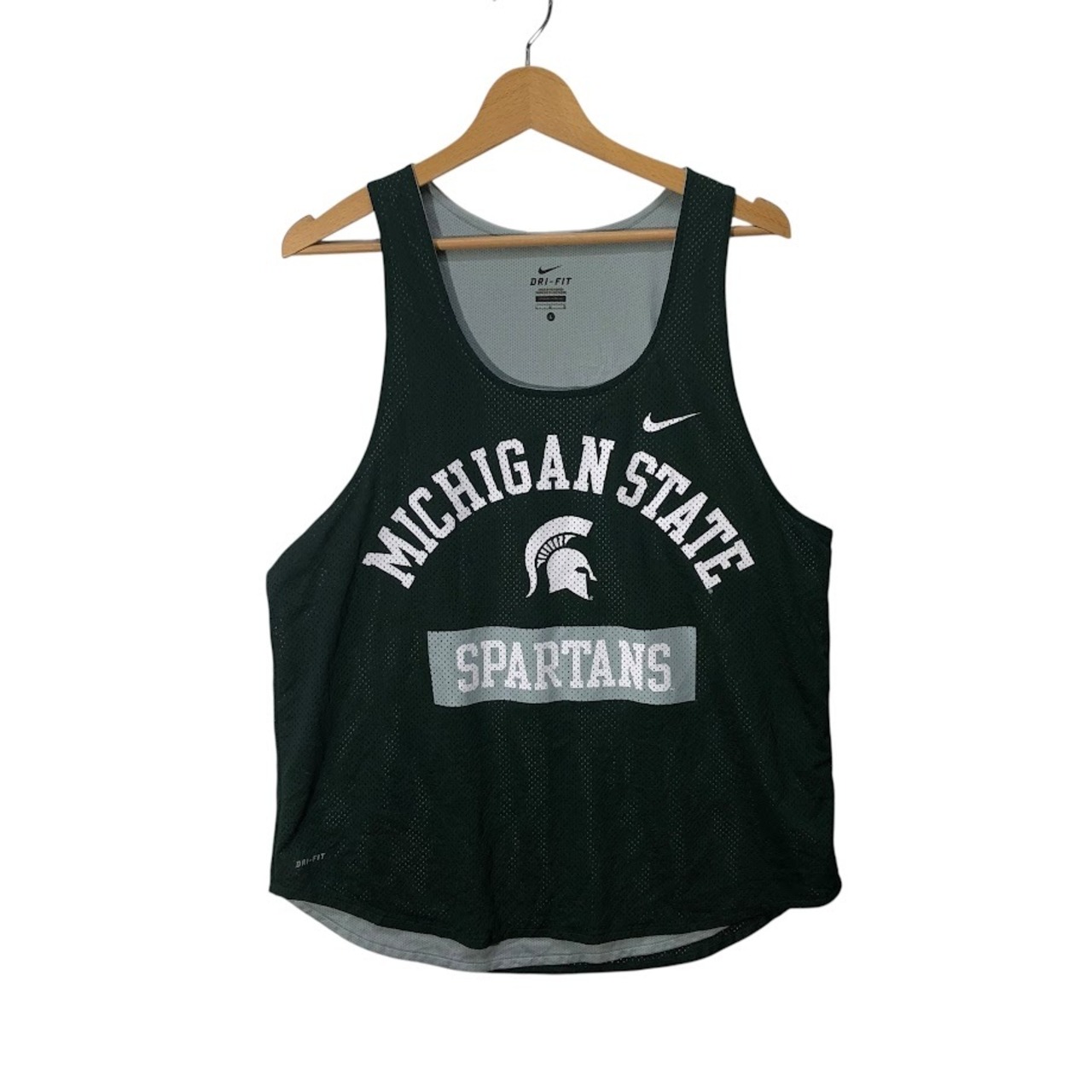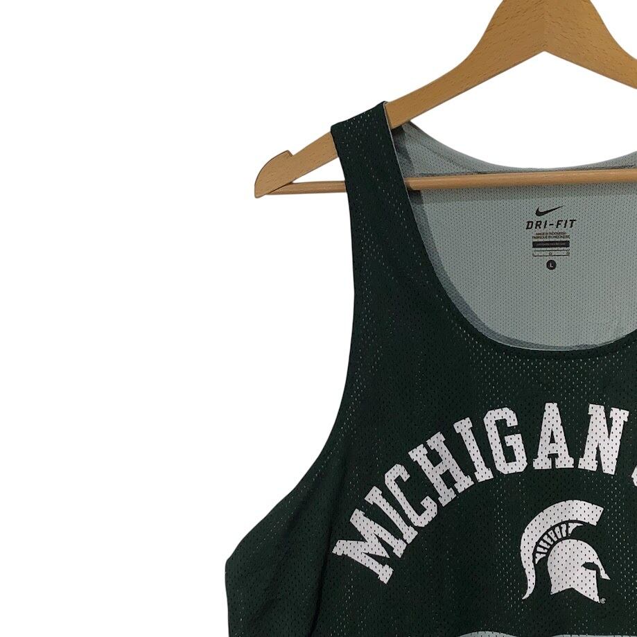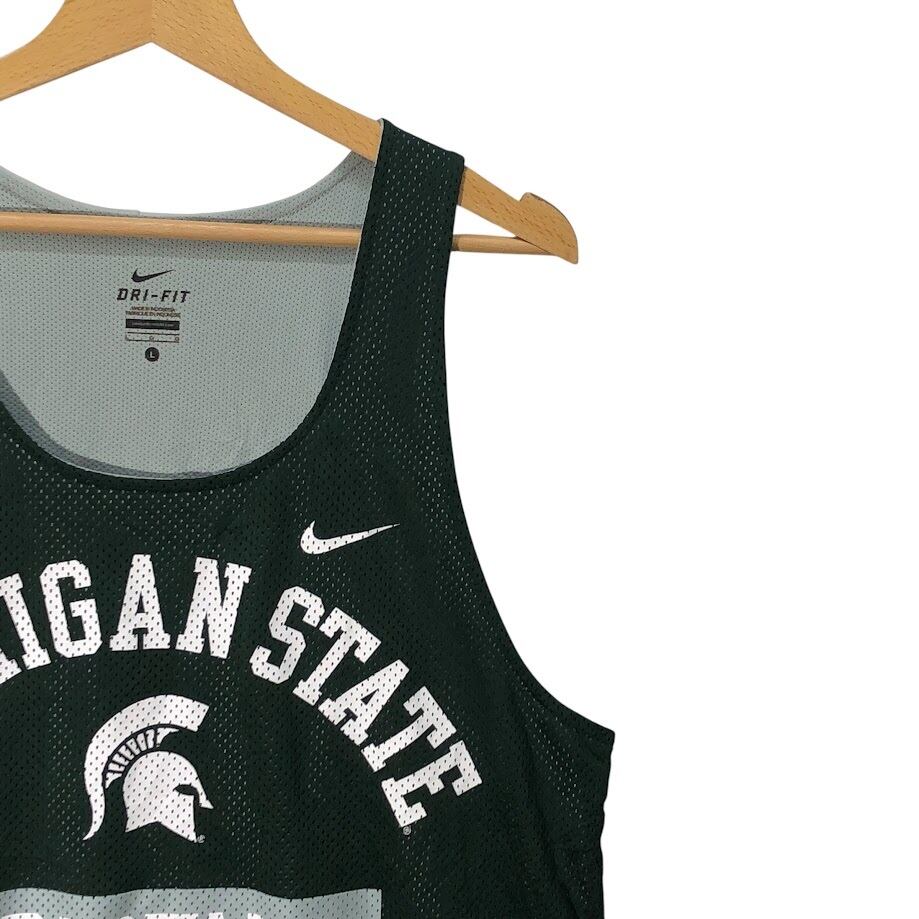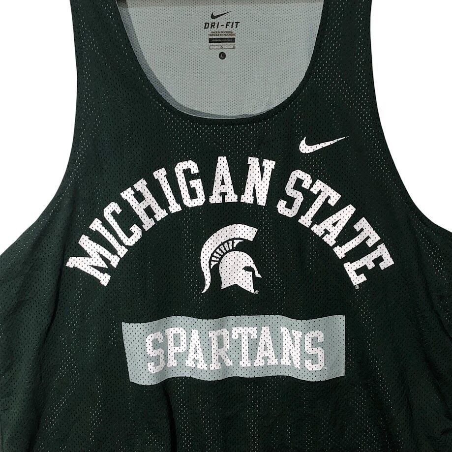 NIKE DRY-FIT ナイキ ミシガン州立大学 スパルタンズ カレッジロゴタンクトップ ユニフォーム チーム ゲームシャツ メッシュ INDONESIA製 Lサイズ グリーン