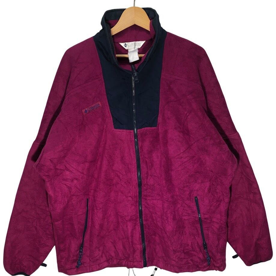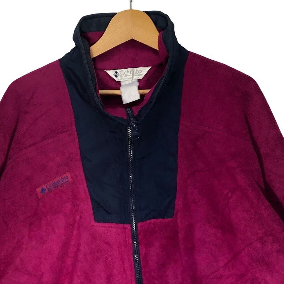 商品名:Columbia/コロンビア フリースジャケット ドローコード フルジップ ジップアップ ライトアウター 長袖 ワンポイント刺繡 オーバーサイズ パープル/ネイビー