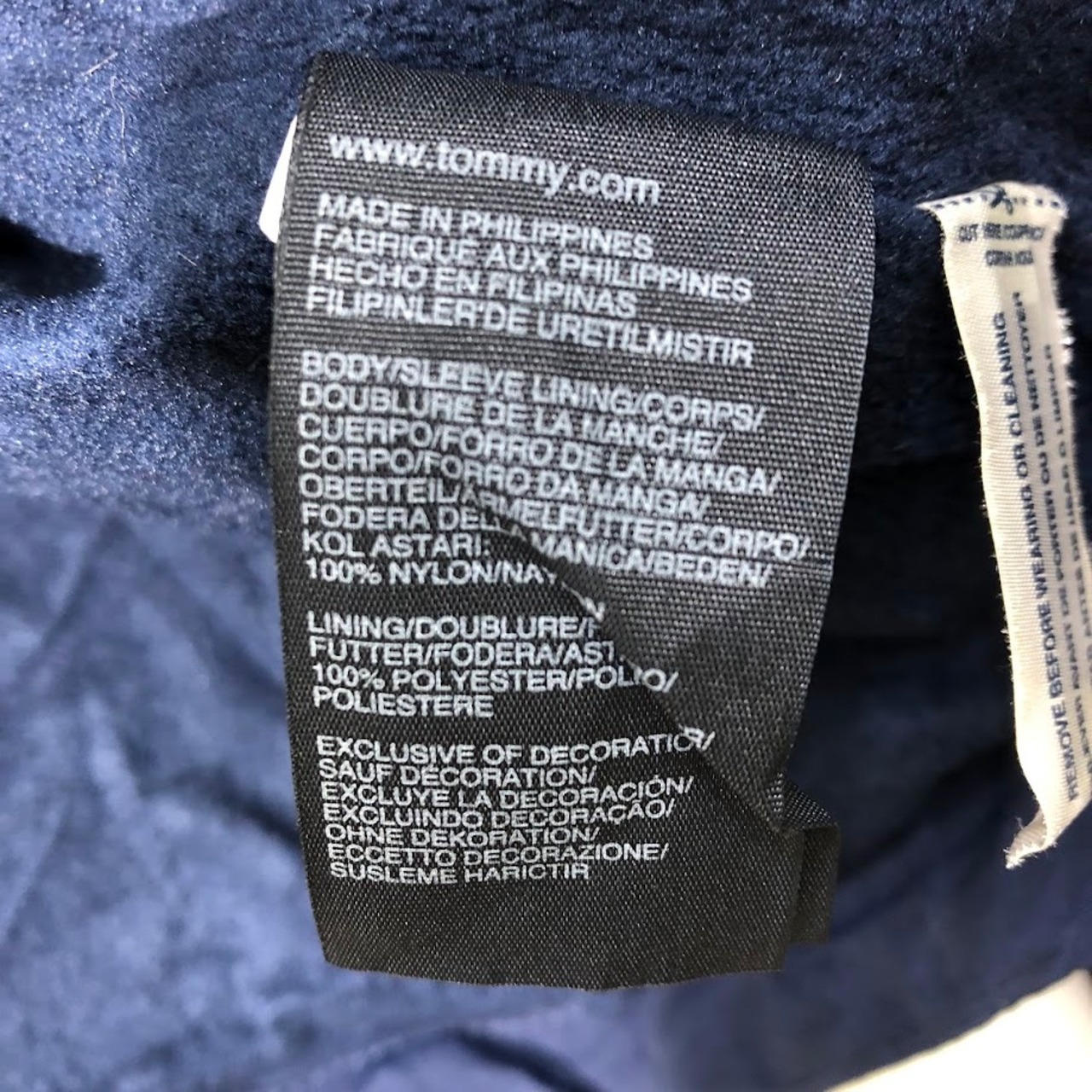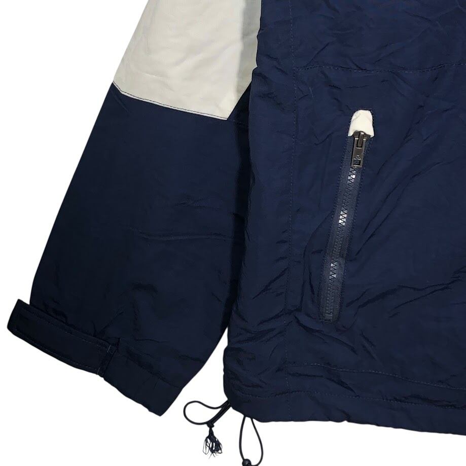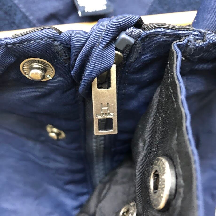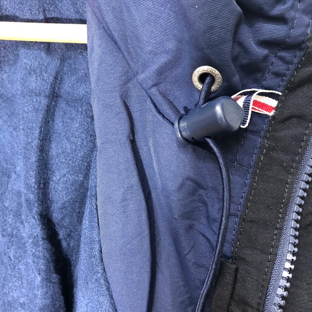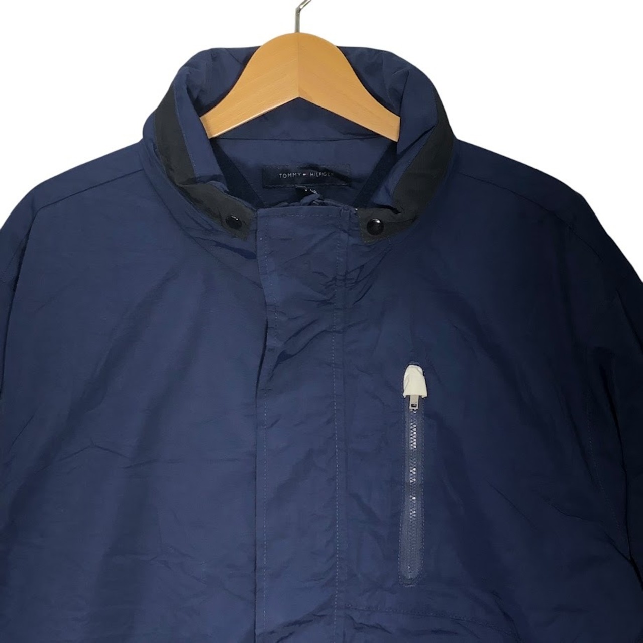 商品名:TOMMY HILFIGER/トミーヒルフィガー フリースライナー フード収納 アウター ナイロンジャケット ドローコード 袖刺繍 Philippines製 XXLサイズ ネイビー