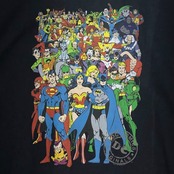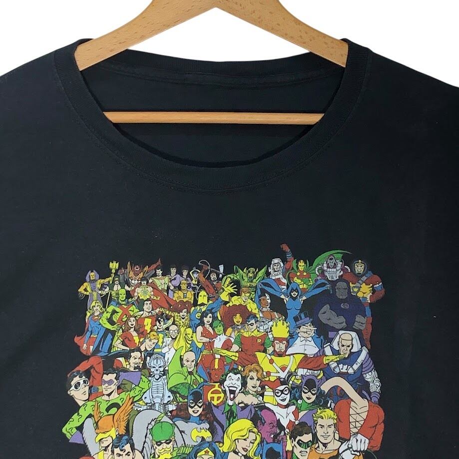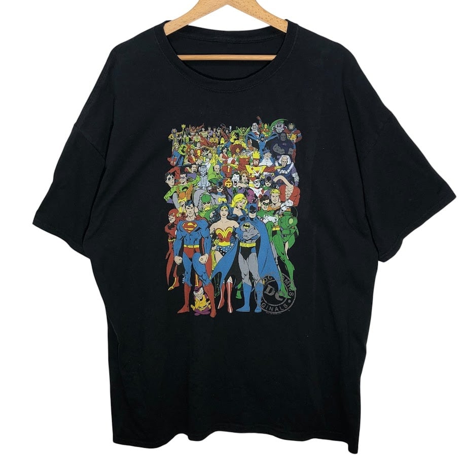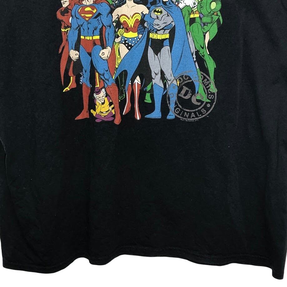 Trevco DC Comics Orijinal Vniverse Justice League スーパーマン ワンダーウーマン バットマン ヒーロープリント Tシャツ フロントプリント ブラック