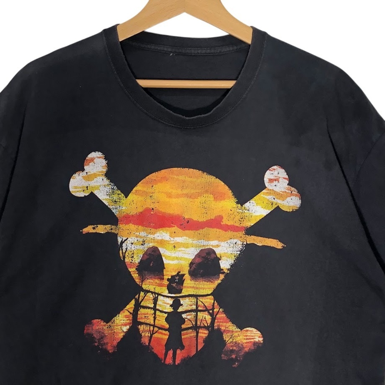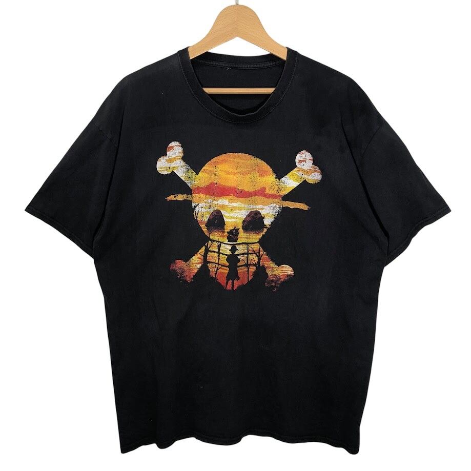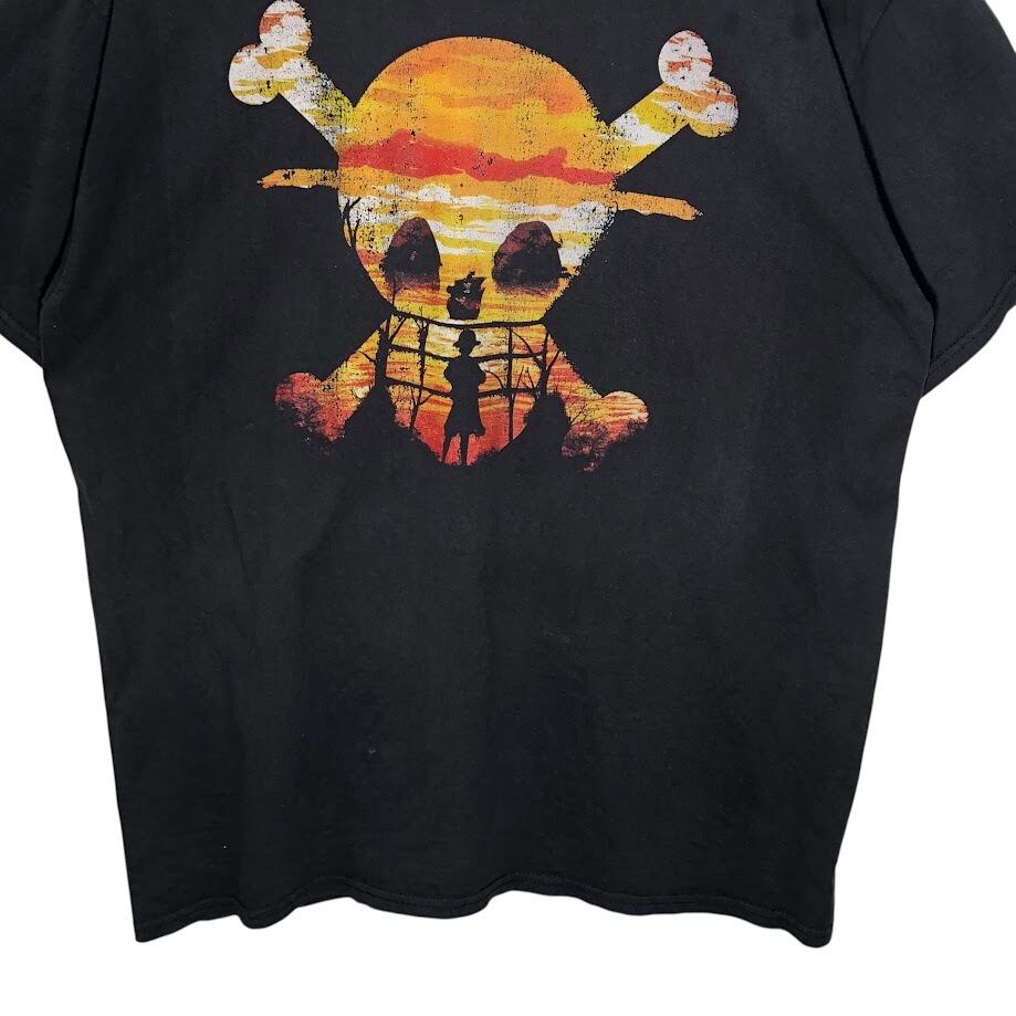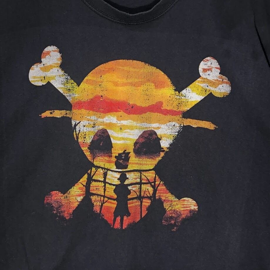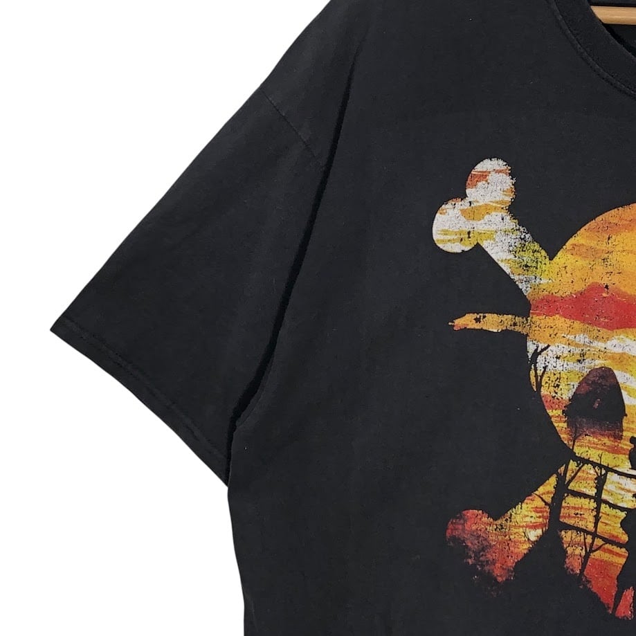 ワンピース プリント ルフィ ドクロマーク アニメ フロントプリント Tシャツ ブラック