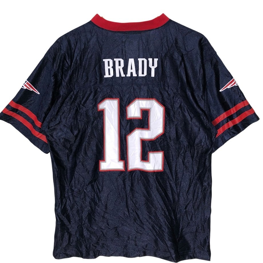 NFL/エヌエフエル TEAM APPAREL PATRIOTS 12 トム・ブレイディ ユニフォーム ゲームシャツ チーム アメフト Tシャツ フロントバック刺繍 Vietnam製 XLサイズ ネイビー