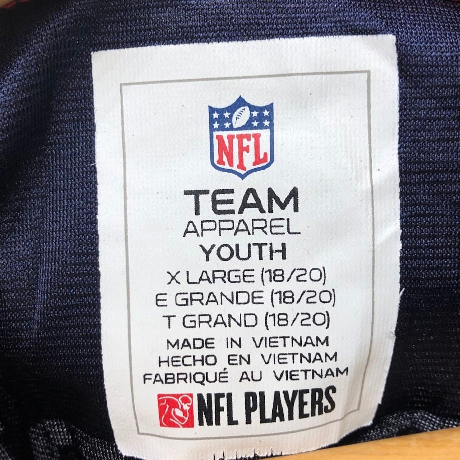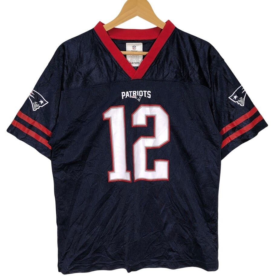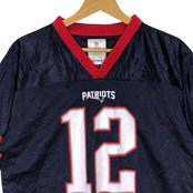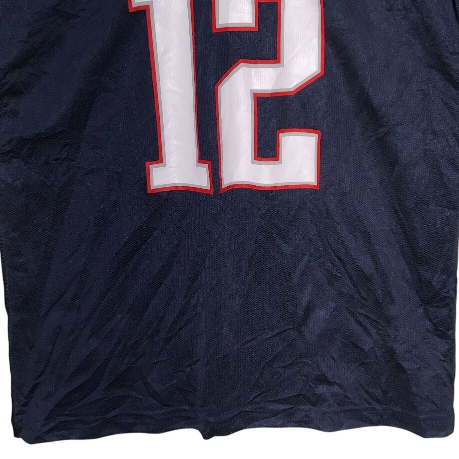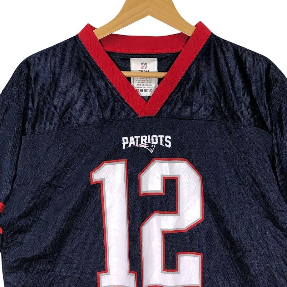 商品名:NFL/エヌエフエル TEAM APPAREL PATRIOTS 12 トム・ブレイディ ユニフォーム ゲームシャツ チーム アメフト Tシャツ フロントバック刺繍 Vietnam製 XLサイズ ネイビー