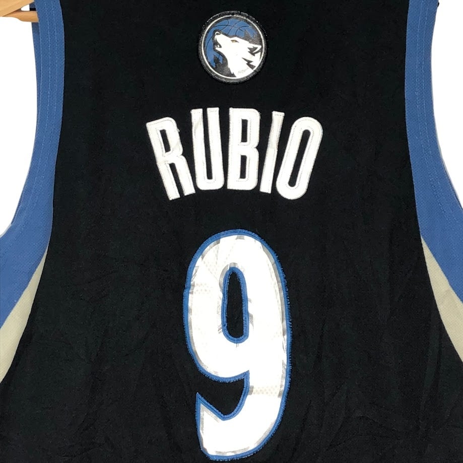adidas/アディダス NBA スウィングマンジャージ ミネソタ・ティンバーウルブス リッキー・ルビオ ユニフォーム チーム バスケット ゲーム 9 フロントバックプリント Vietnam製 Sサイズ ブラック