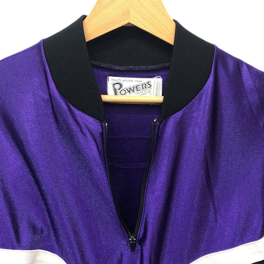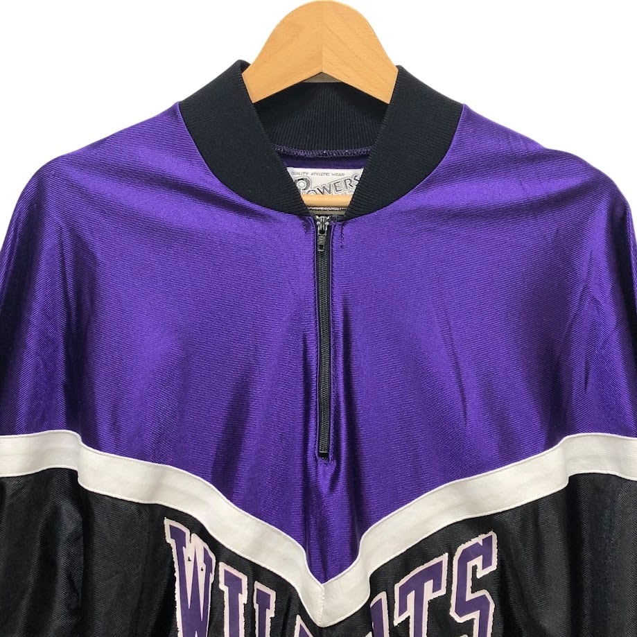 POWERS WILD CATS ヴィンテージ USA製 ゲームシャツ ハーフジップ チーム ドルマン フロントプリント 48サイズ パープル