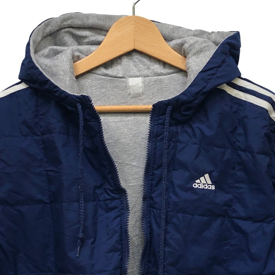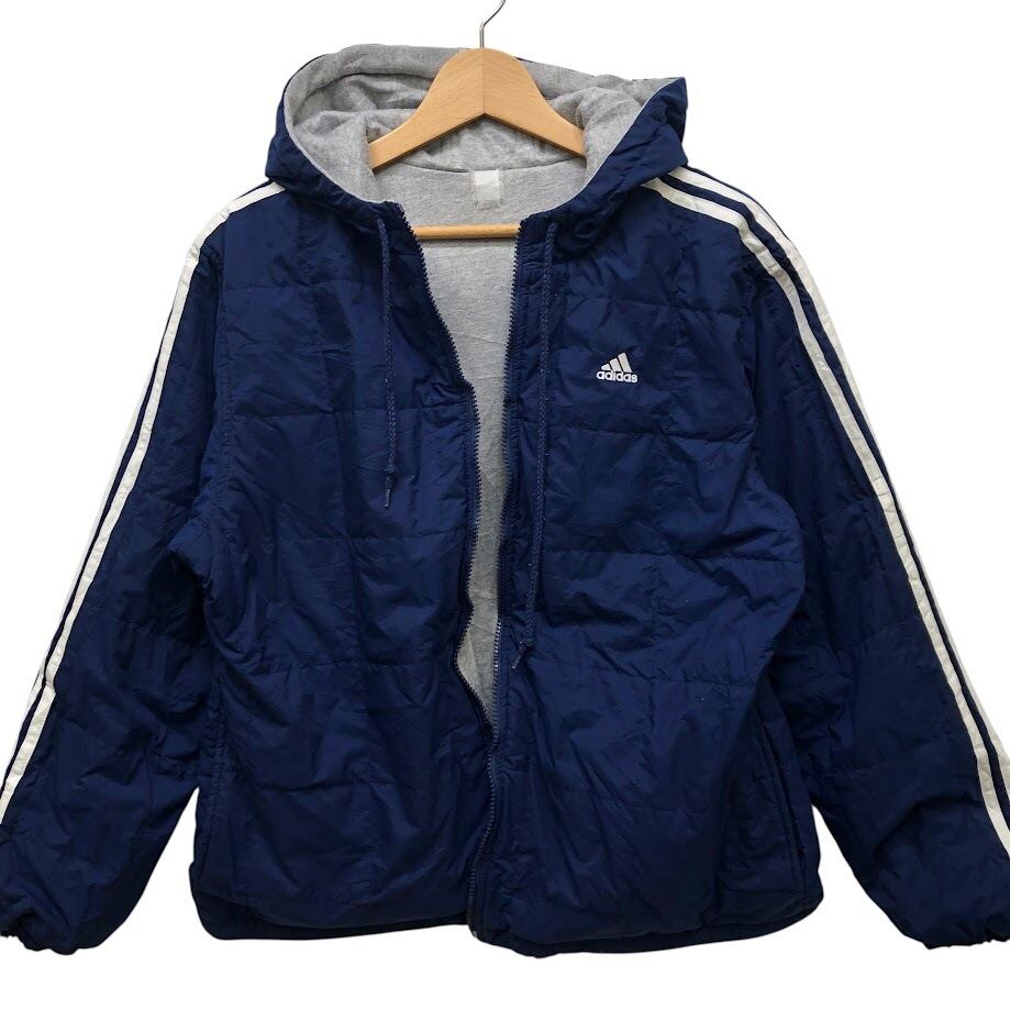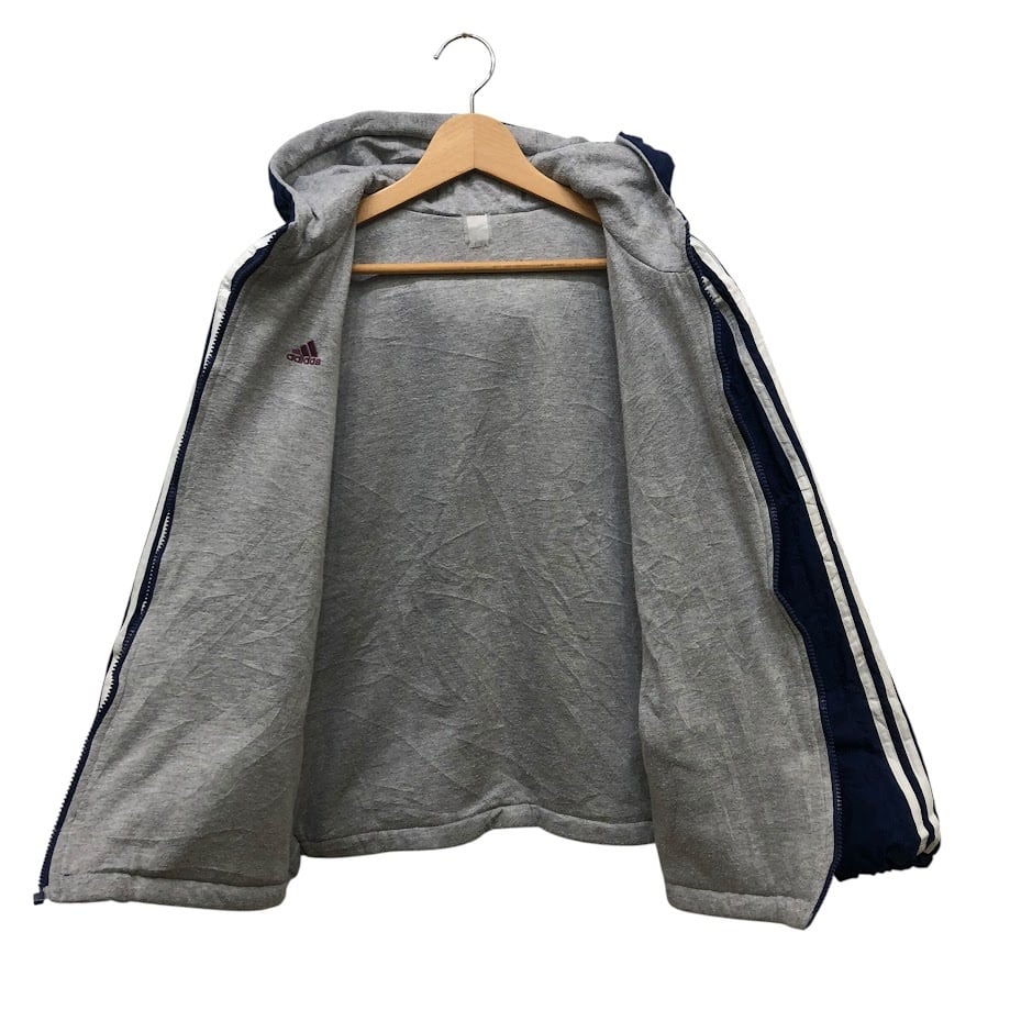 商品名:adidas/アディダス リバーシブル スウェット パーカー ワンポイントプリント Mサイズ THAILAND製 ネイビー/グレー