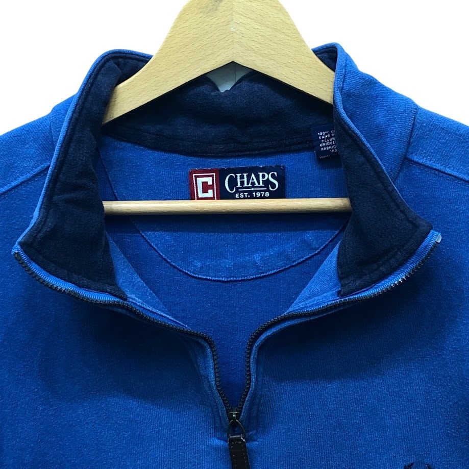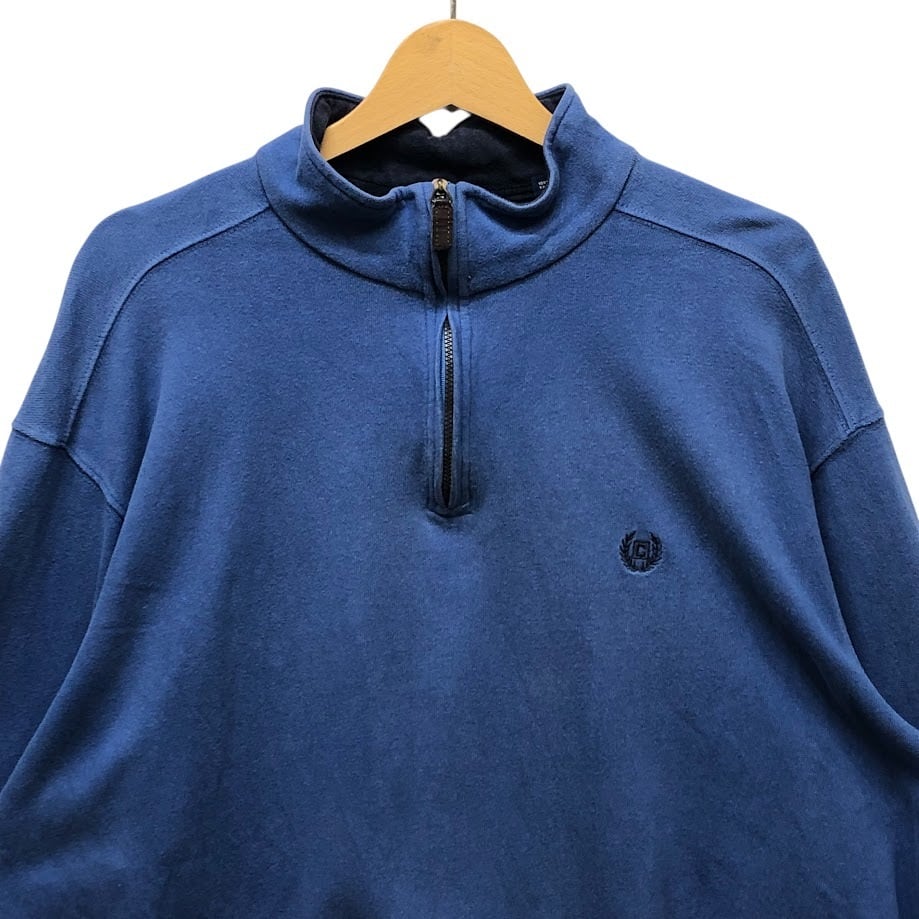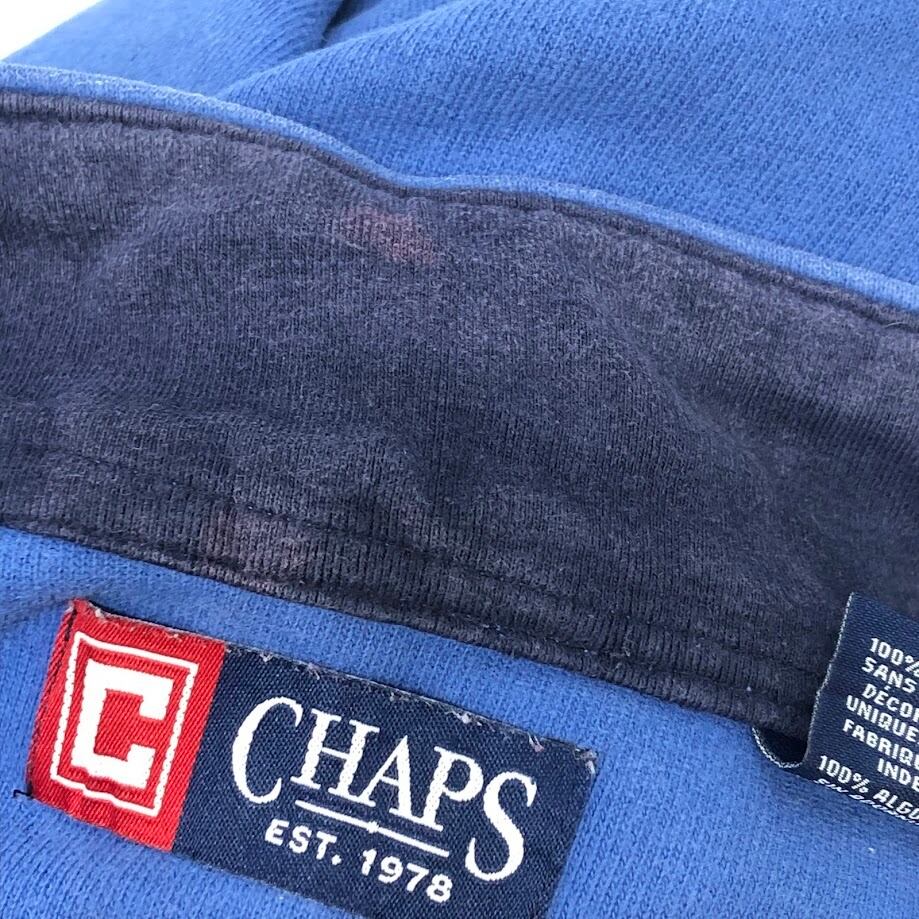 商品名:CHAPS/チャップス ハーフジップ スウェット トレーナー プルオーバー 長袖 ワンポイント刺繡 オーバーサイズ ビッグシルエット INDIA製 XLサイズ ブルー