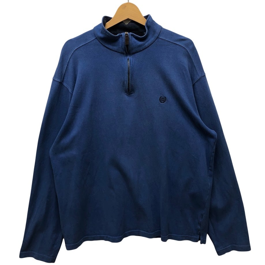 CHAPS/チャップス ハーフジップ スウェット トレーナー プルオーバー 長袖 ワンポイント刺繡 オーバーサイズ ビッグシルエット INDIA製 XLサイズ ブルー