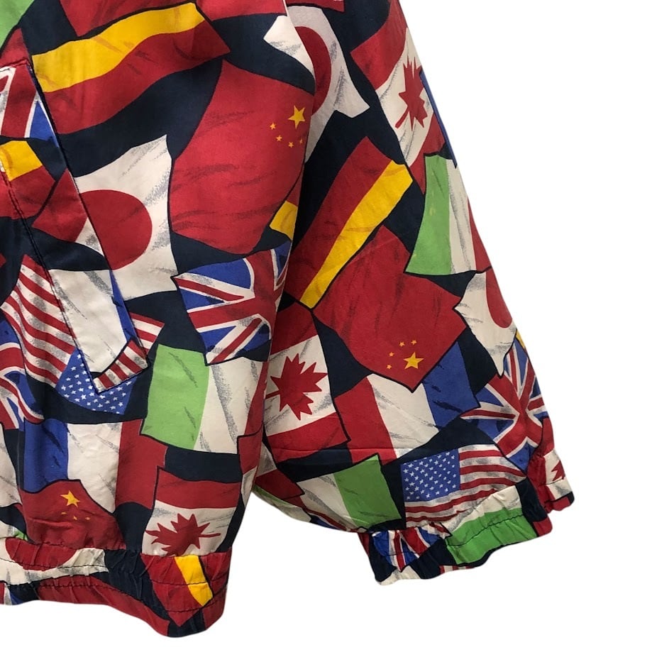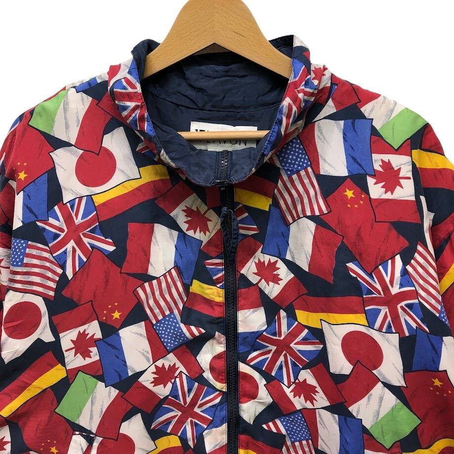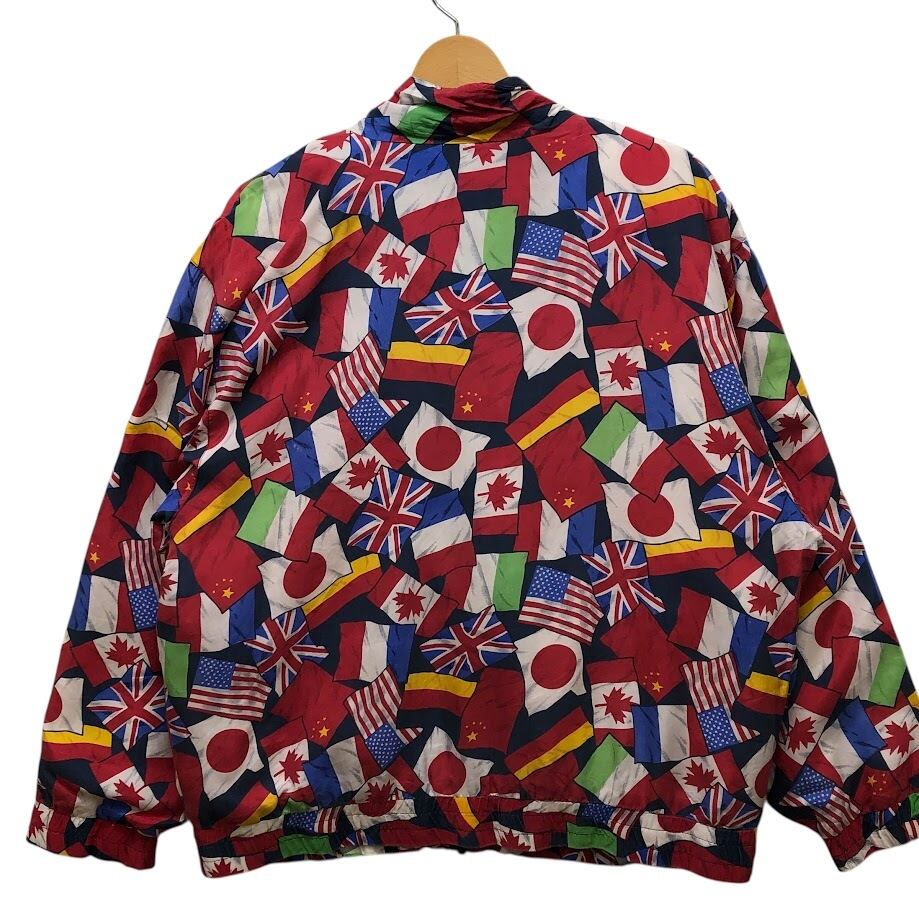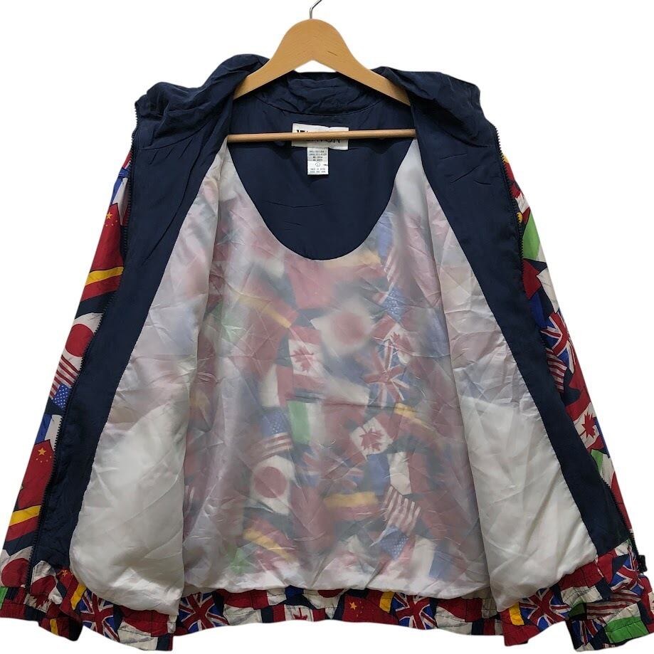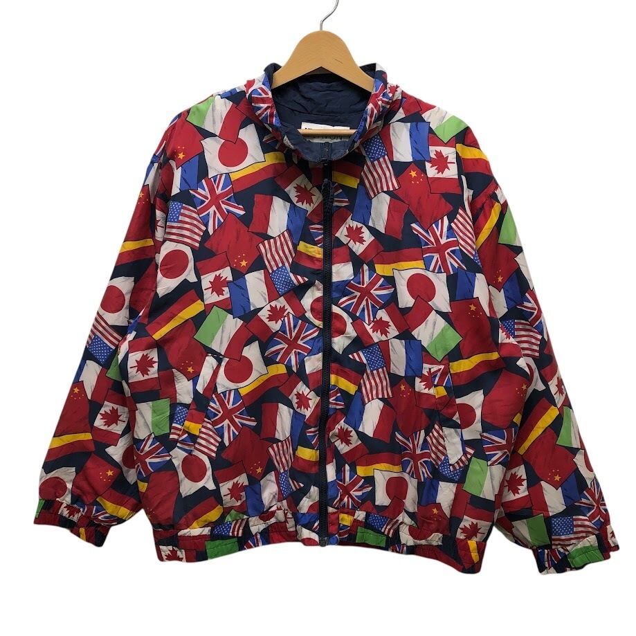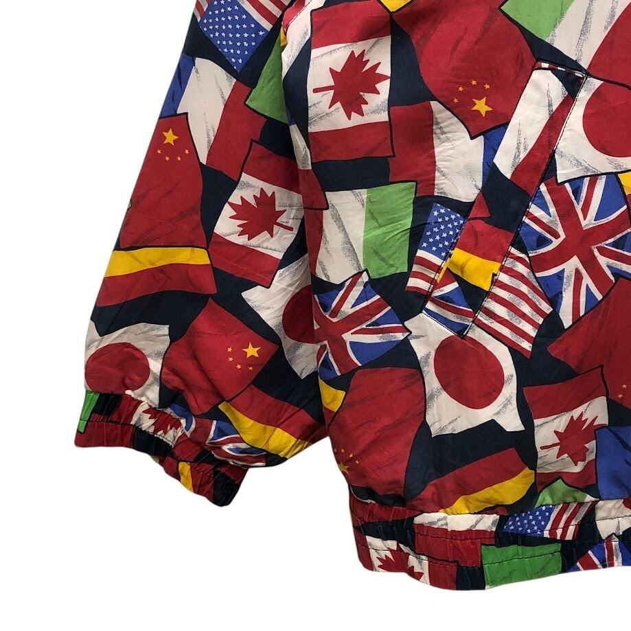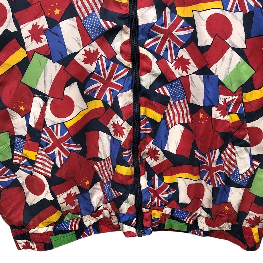 商品名:ヴィンテージ LAVON ラボン 国旗柄 総柄 シルク フルジップ ナイロンジャケット 長袖 プリント オーバーサイズ ビッグシルエット CHINA製 Lサイズ マルチカラー