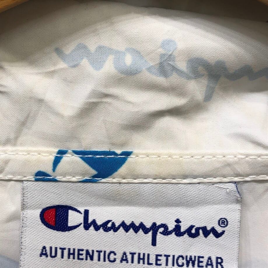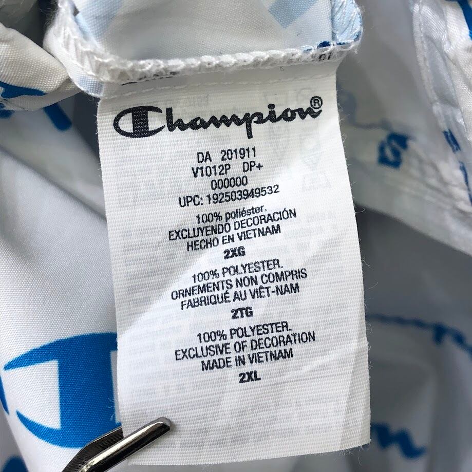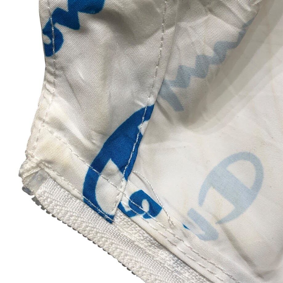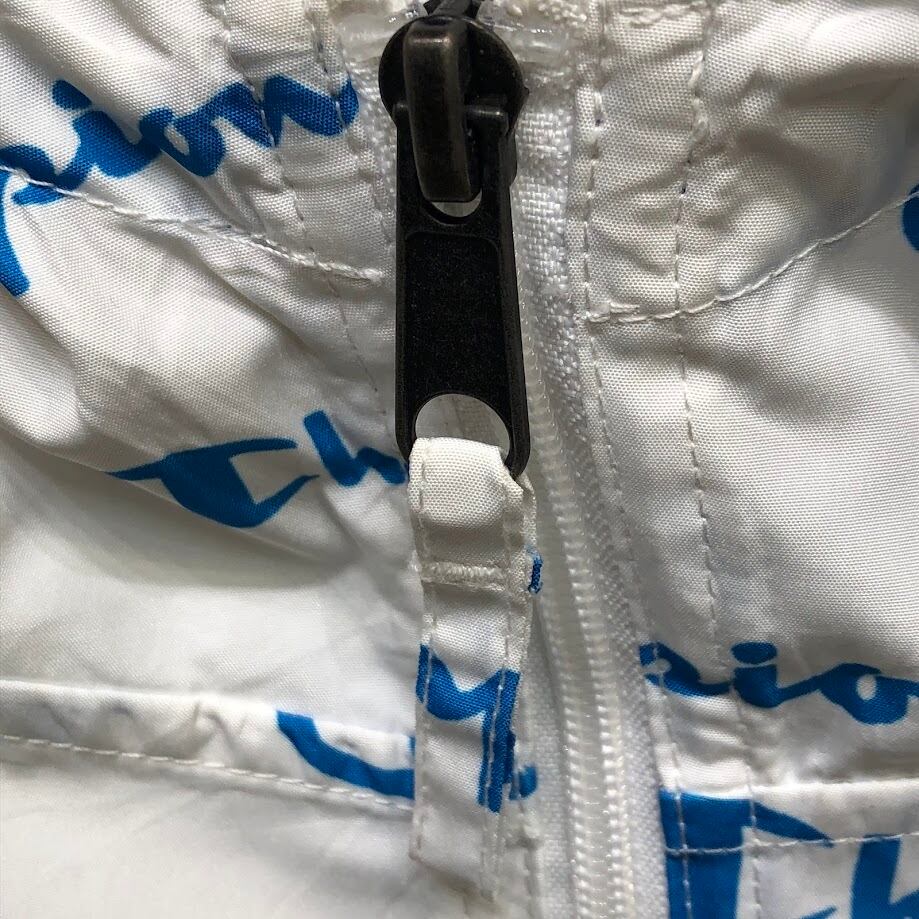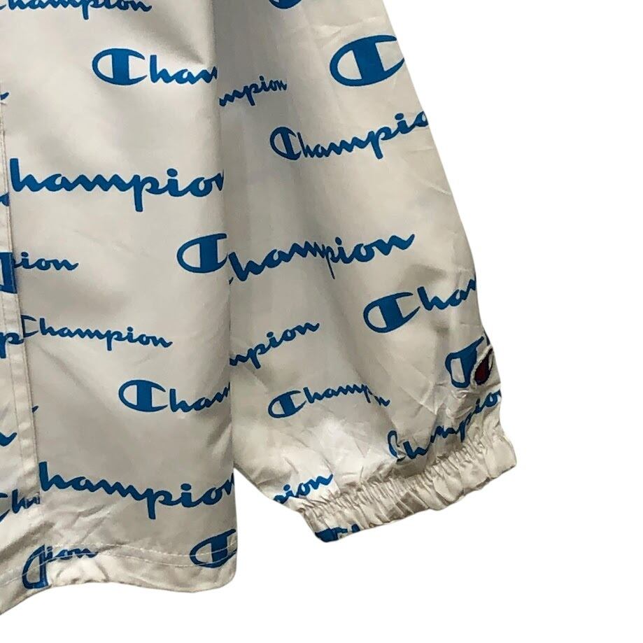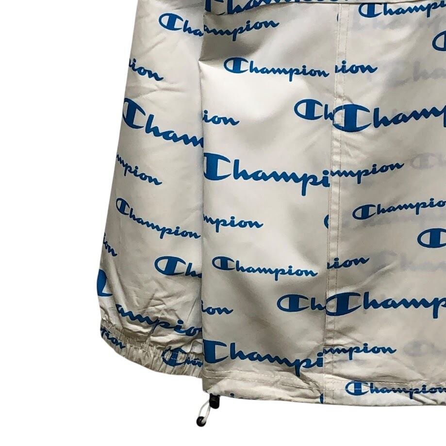 商品名:Champion チャンピオン ロゴプリント 総柄 ウインドブレーカー フーディー プルオーバー ナイロン 長袖 オーバーサイズ ビッグシルエット Vietnam製 2XLサイズ ホワイト