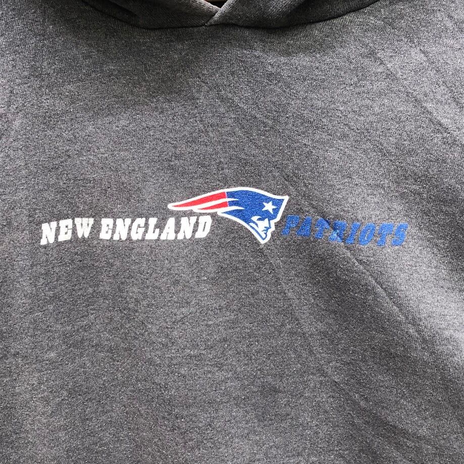 NFL エヌエフエル アメフト フットボール チーム スポーツ チームロゴ NEW ENGLAND PATRIOTS ニューイングランドペイトオッツ パーカー フーディー プルオーバー 長袖 フロントプリント グレー