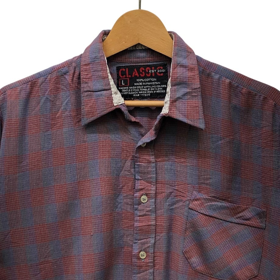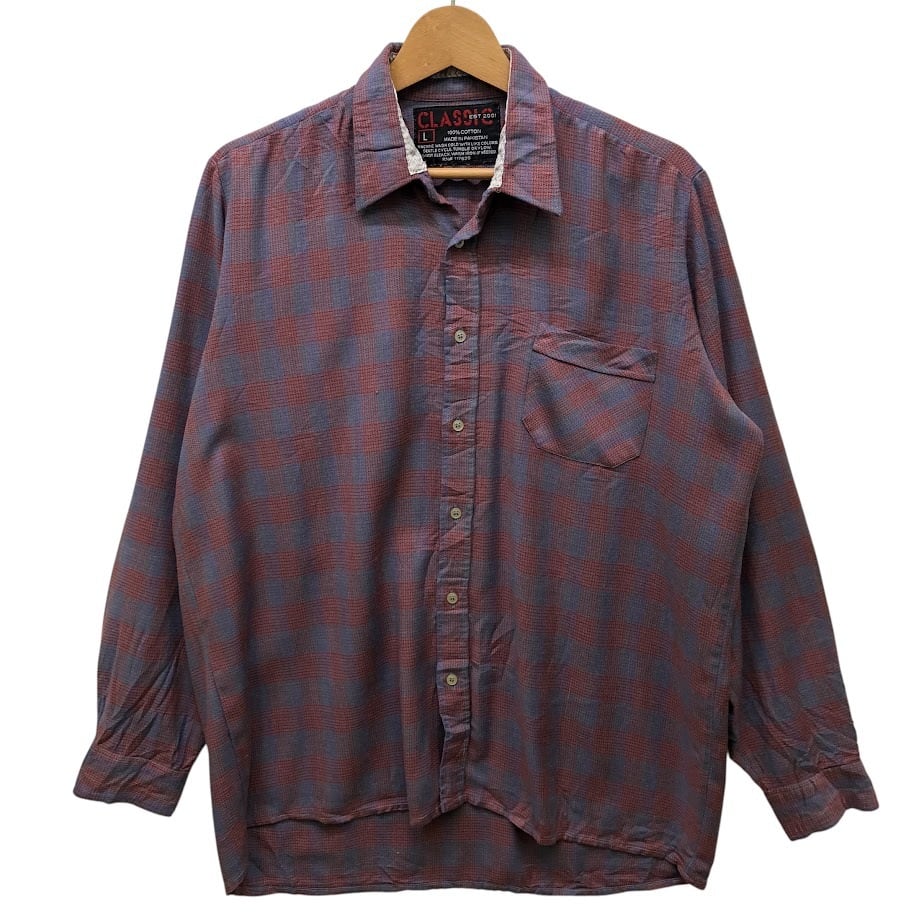 CLASSIC クラシック チェック柄 ネルシャツ 長袖 シャツ ボタンダウン オーバーサイズ ビッグシルエット Pakistan製 Lサイズ レッド ブルー グリーン