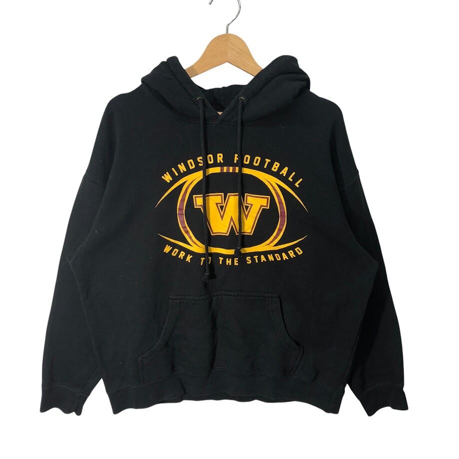 KOLLEGE TOWN Windsor Football フットボール パーカー フーディー プルオーバー 長袖 フロントプリント オーバーサイズ Pakistan製 Lサイズ ブラック