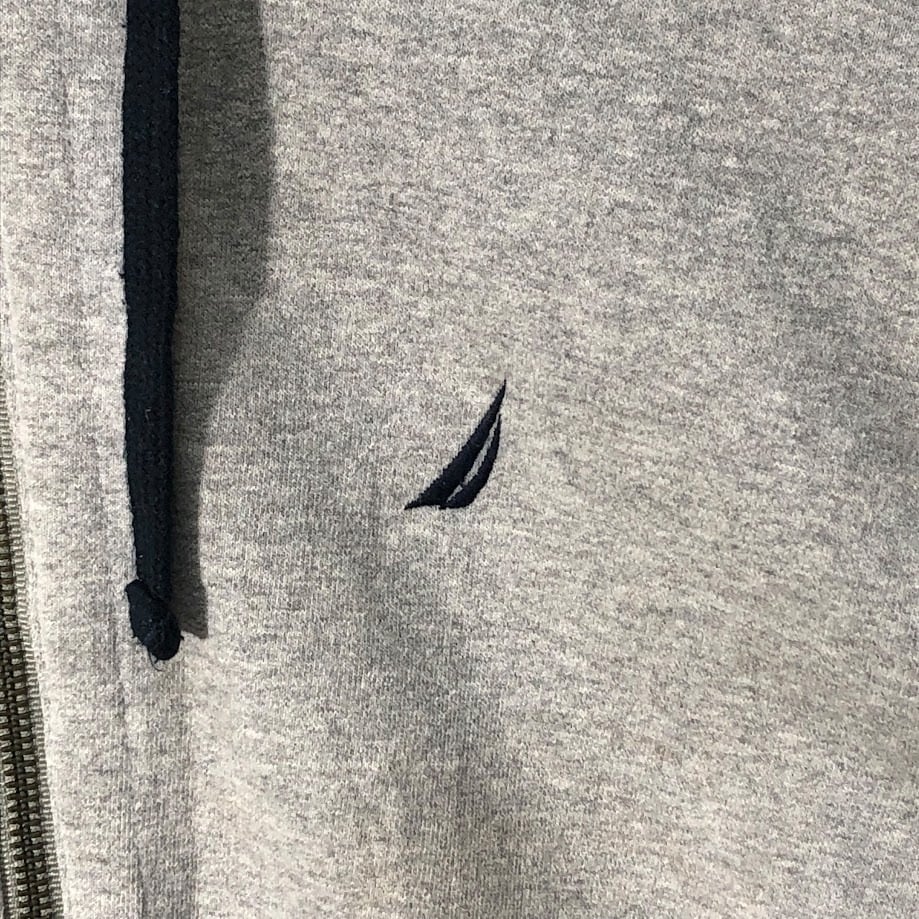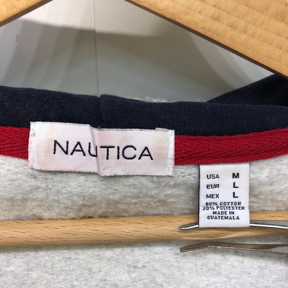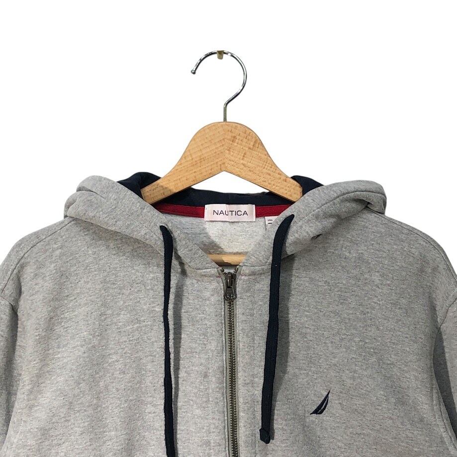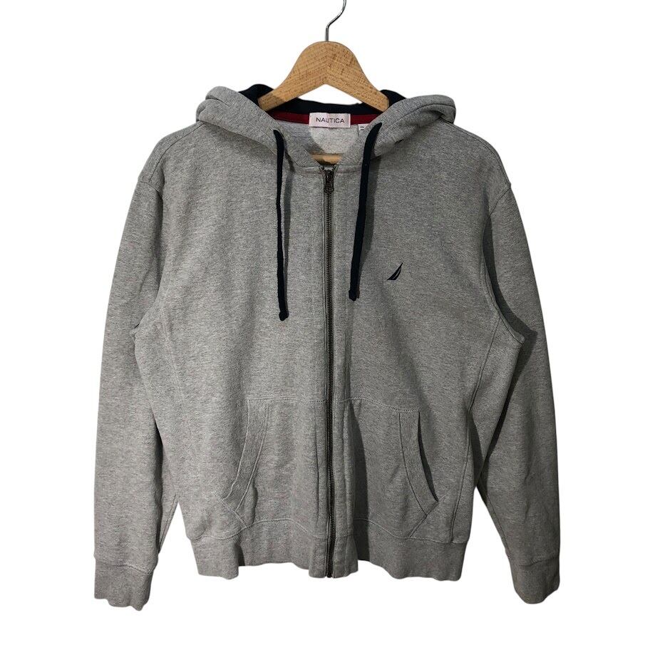 NAUTICA ノーティカ フルジップ ジップアップ裏起毛 パーカー フーディー 長袖 ワンポイント刺繡 GUATEMALA製 USA Mサイズ グレー