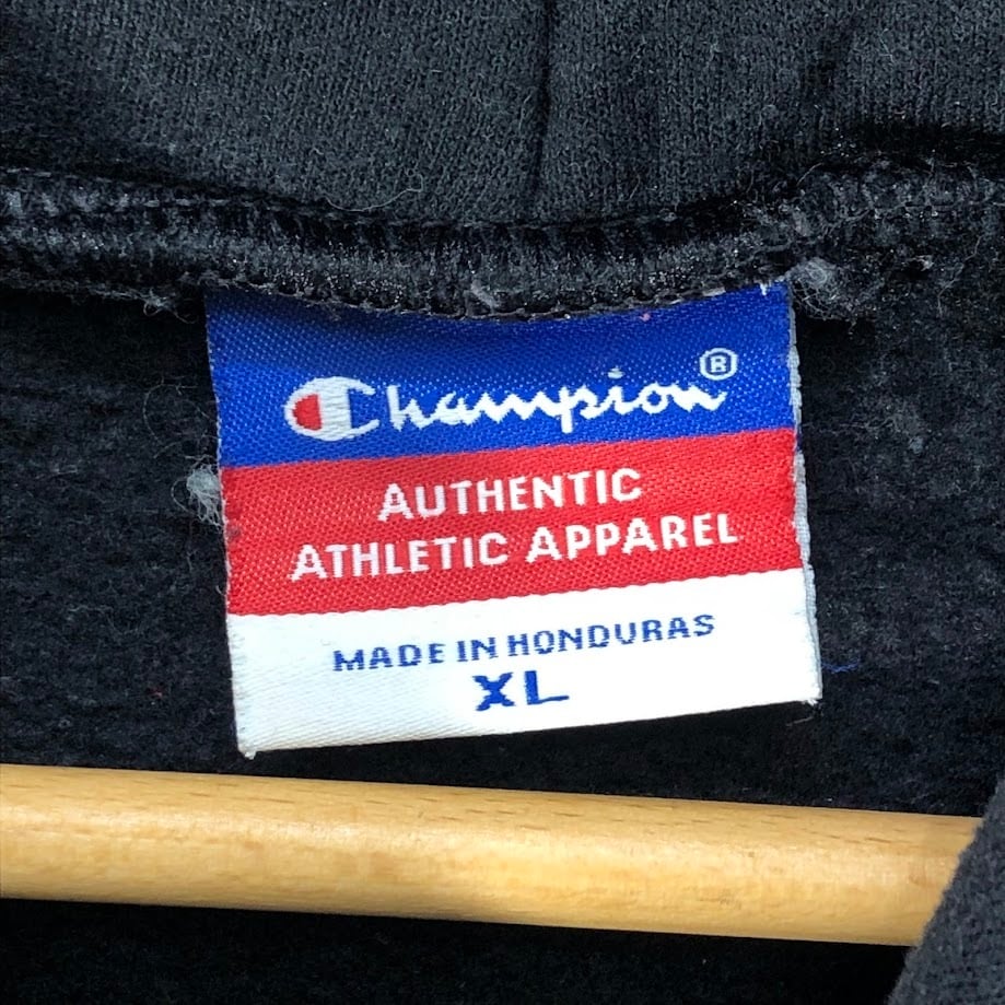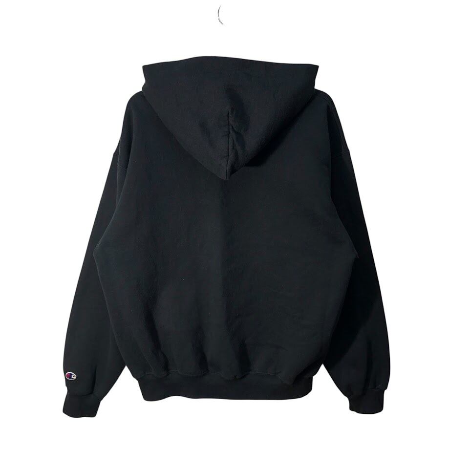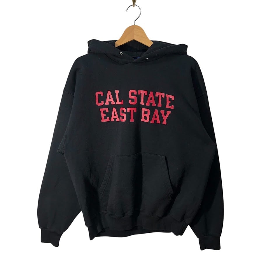 商品名:00's vintage 00年代 ヴィンテージ Champion チャンピオン カレッジプリント CAL STATE EAST BAY パーカー フーディー プルオーバー 長袖 フロントプリント 袖刺繍 Honduras製 XLサイズ ブラック