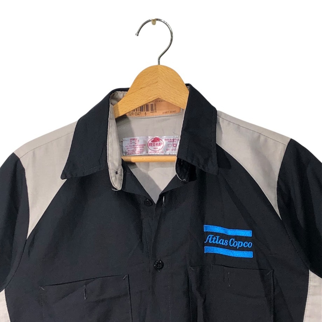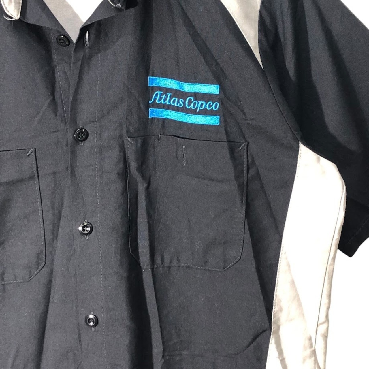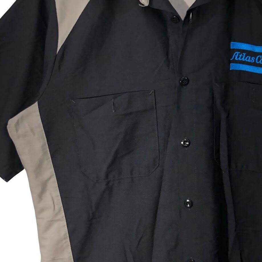 商品名:RED KAP レッドキャップ ワークシャツ ダブルポケット 企業モノ 企業ロゴ刺繍 半袖シャツ ボタンダウンシャツ HONDURAS製 Sサイズ ブラック グレー