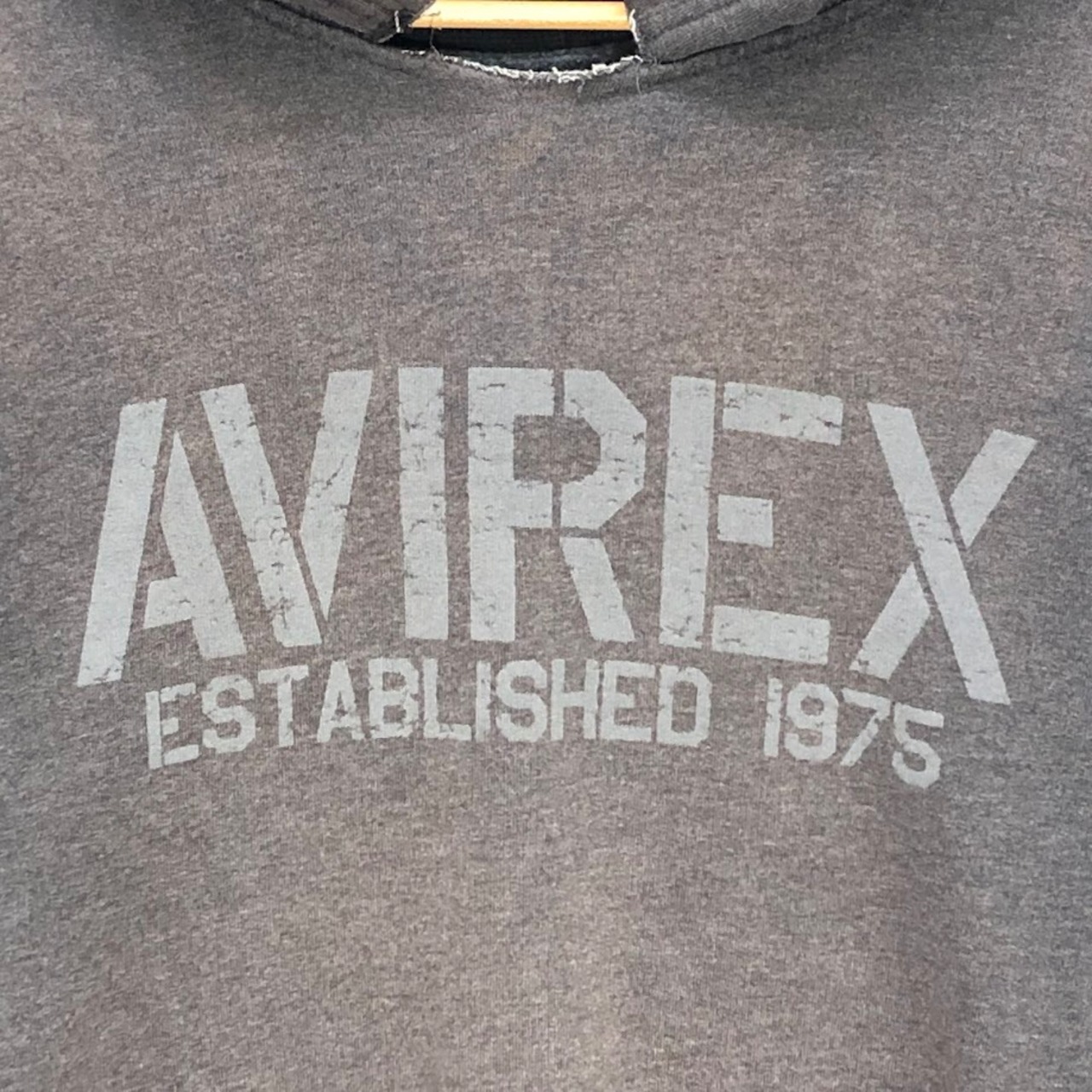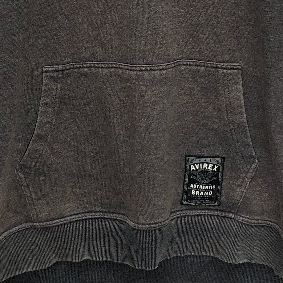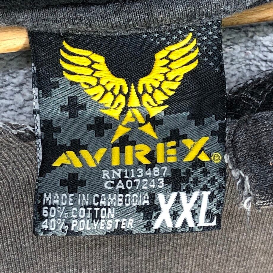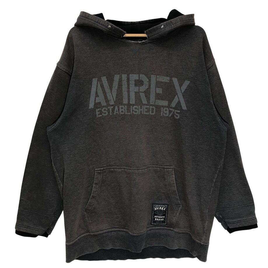 AVIREX アヴィレックス ロゴプリント パーカー フーディー プルオーバー 長袖 フロントプリント ワンポイント刺繡 オーバーサイズ ビッグシルエット カンボジア製 XXLサイズ ダークグレー