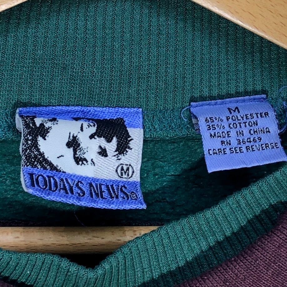 商品名:vintage ヴィンテージ TODAYS NEWS ハーフジップ スウェット グリーンインナードッキング China製 Mサイズ ワインレッド グリーン