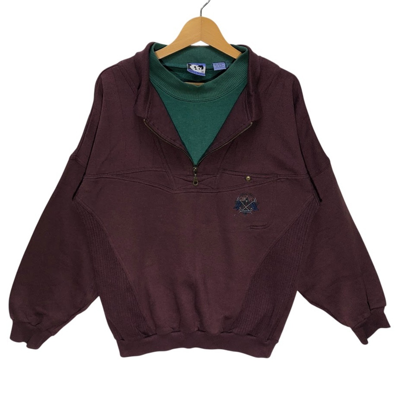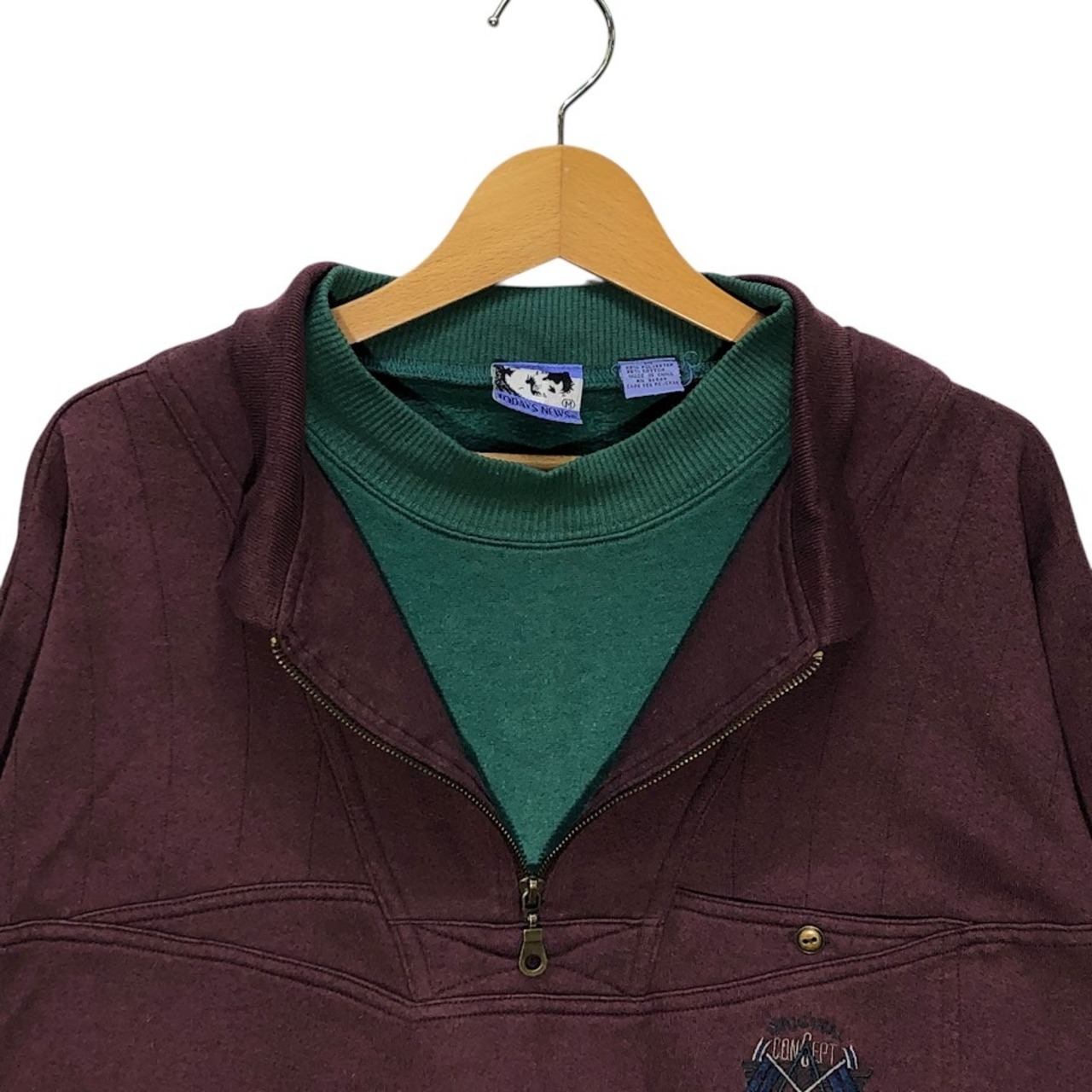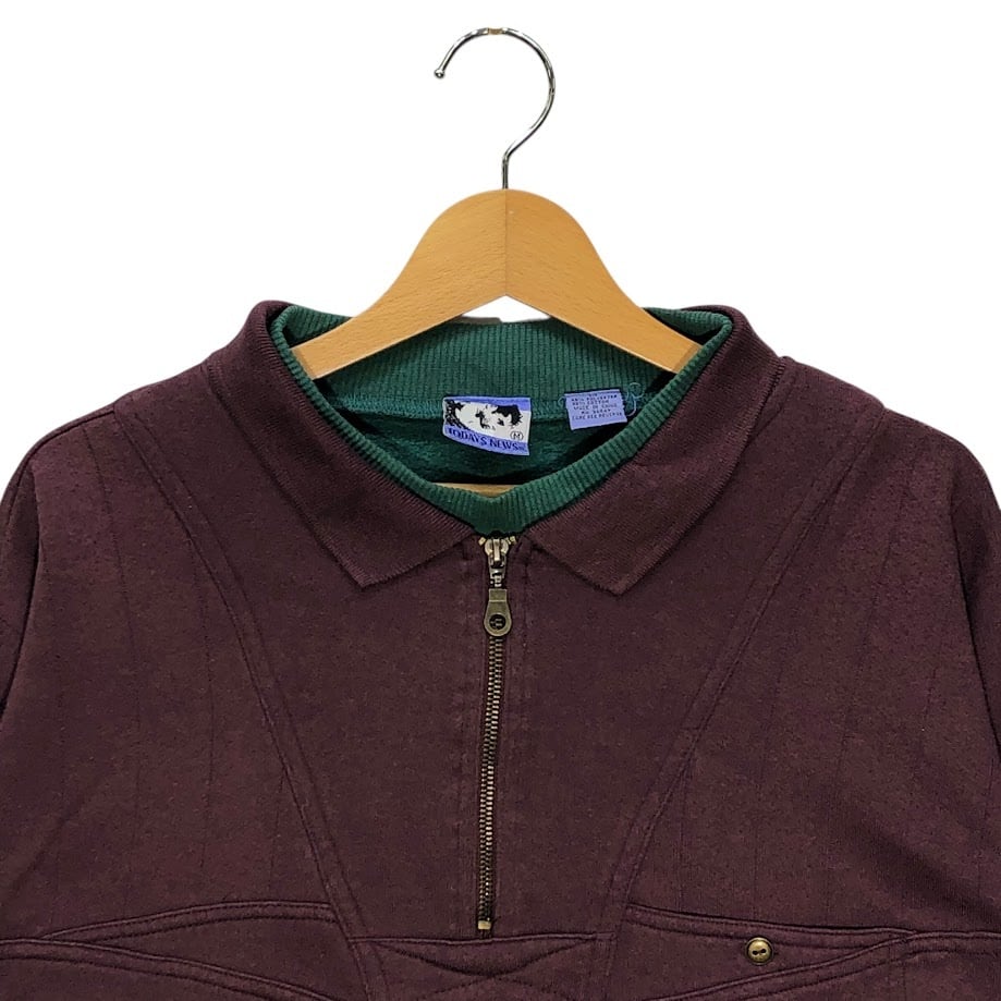vintage ヴィンテージ TODAYS NEWS ハーフジップ スウェット グリーンインナードッキング China製 Mサイズ ワインレッド グリーン