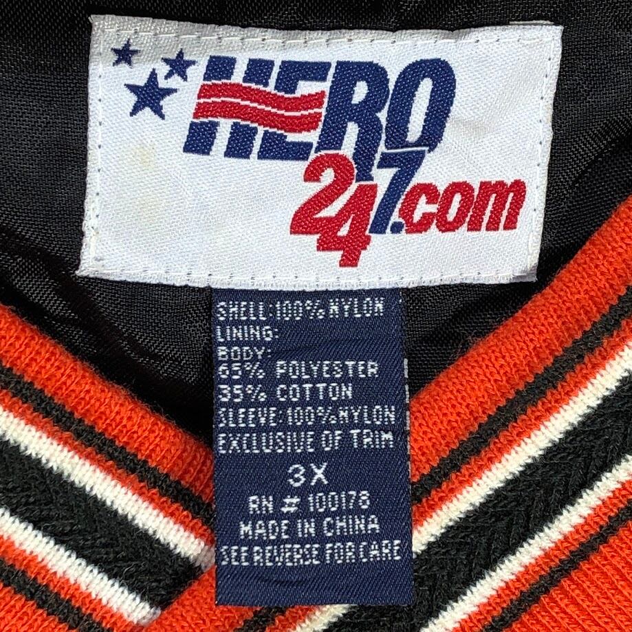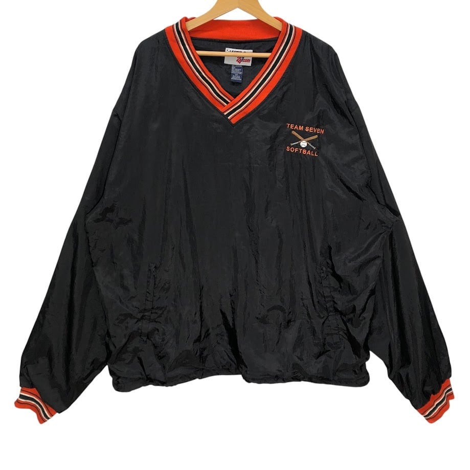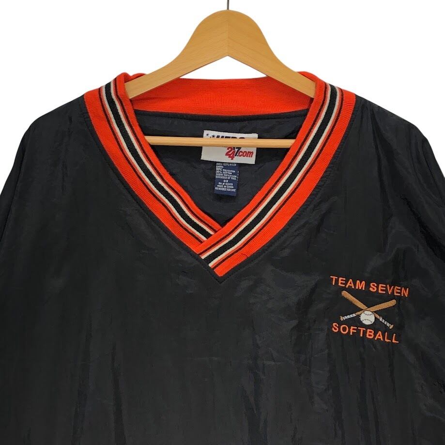 HERO 247.com ナイロンプルオーバー ライトアウター ナイロンジャケット ソフトボールチーム ロゴ刺繡 長袖 フロント刺繍 バック刺繡 China製 3Xサイズ ブラック オレンジ