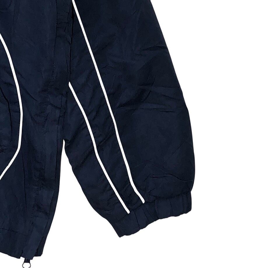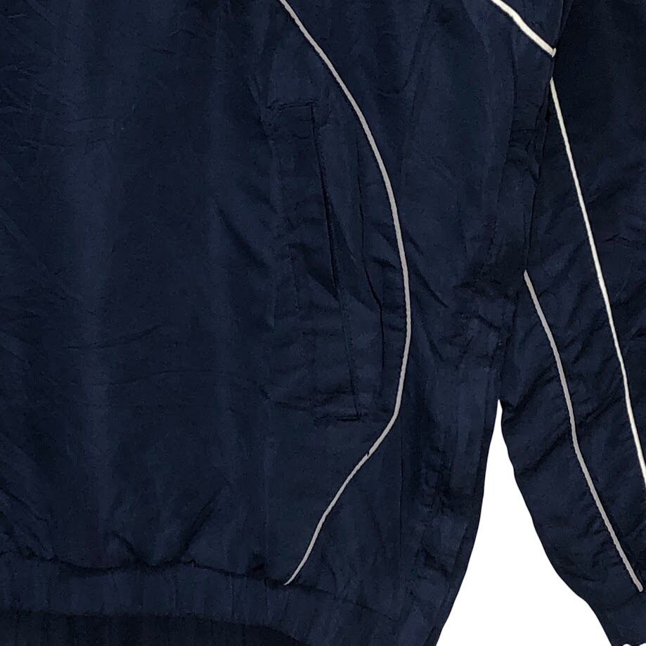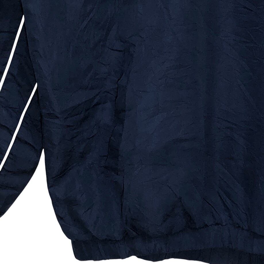 商品名:90's vintage 90年代 ヴィンテージ 58SPORTS ナイロンプルオーバーシャツ ニューハンプシャー大学 カレッジロゴ刺繡 裾ジップ フロント バック刺繡 オーバーサイズ Vネック China製 Lサイズ ネイビー