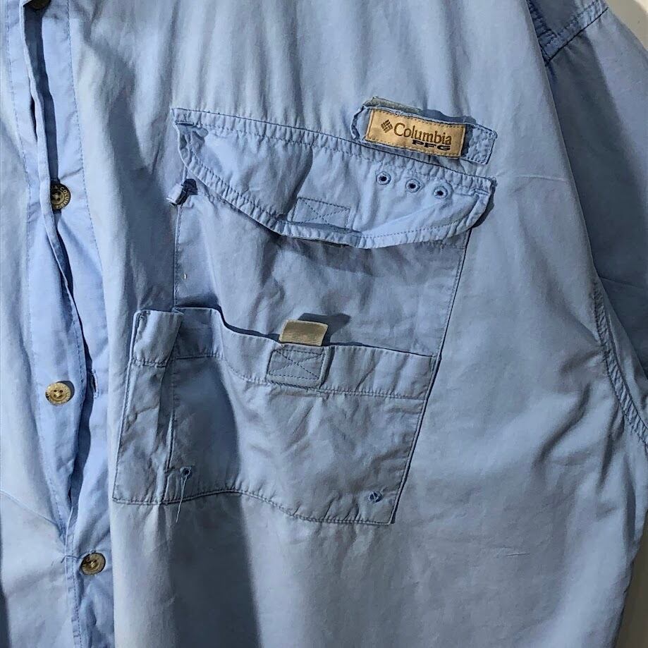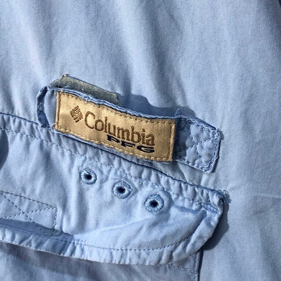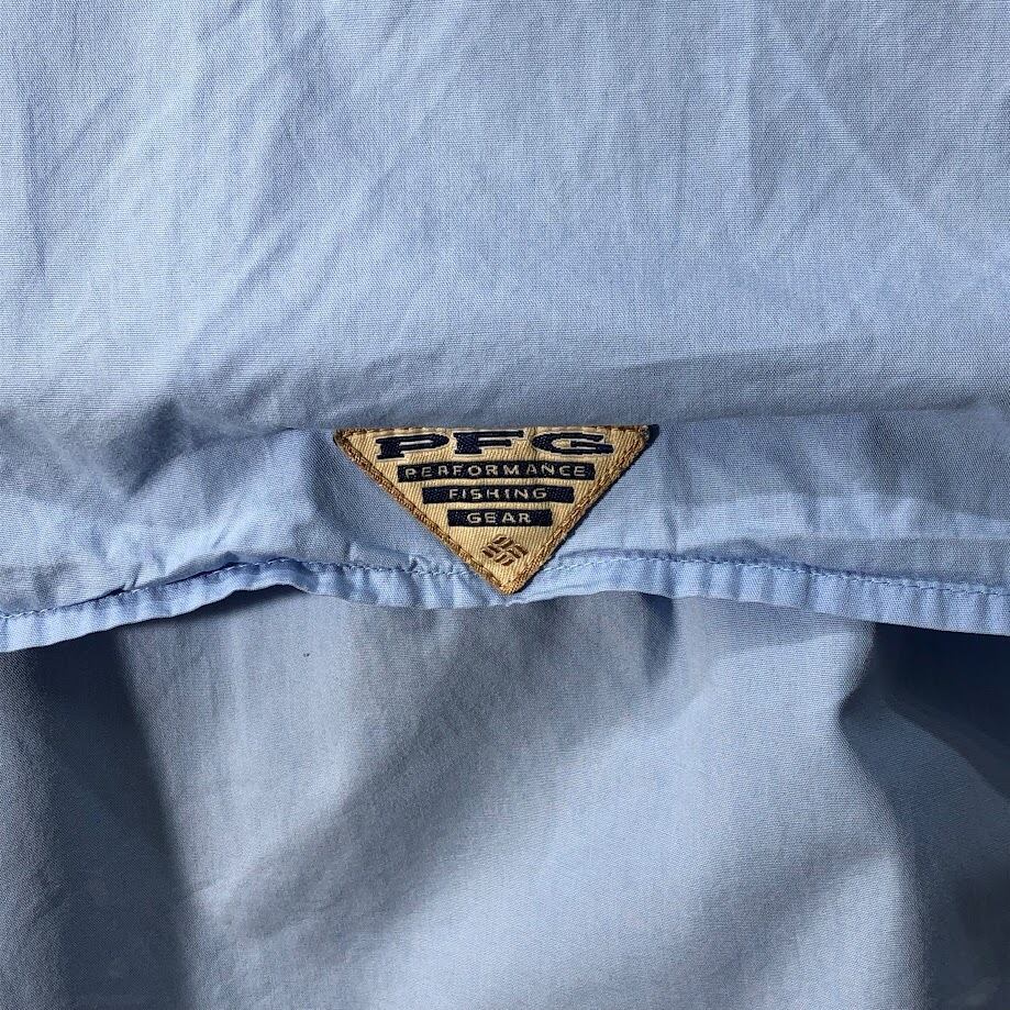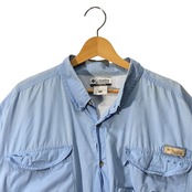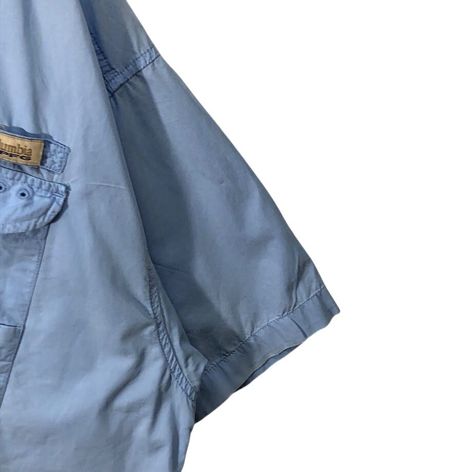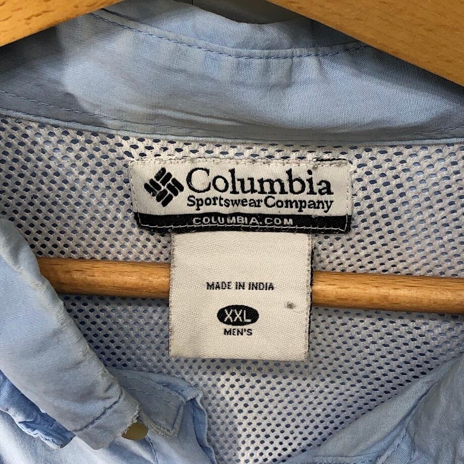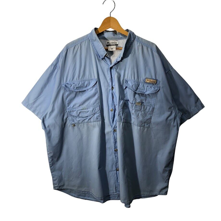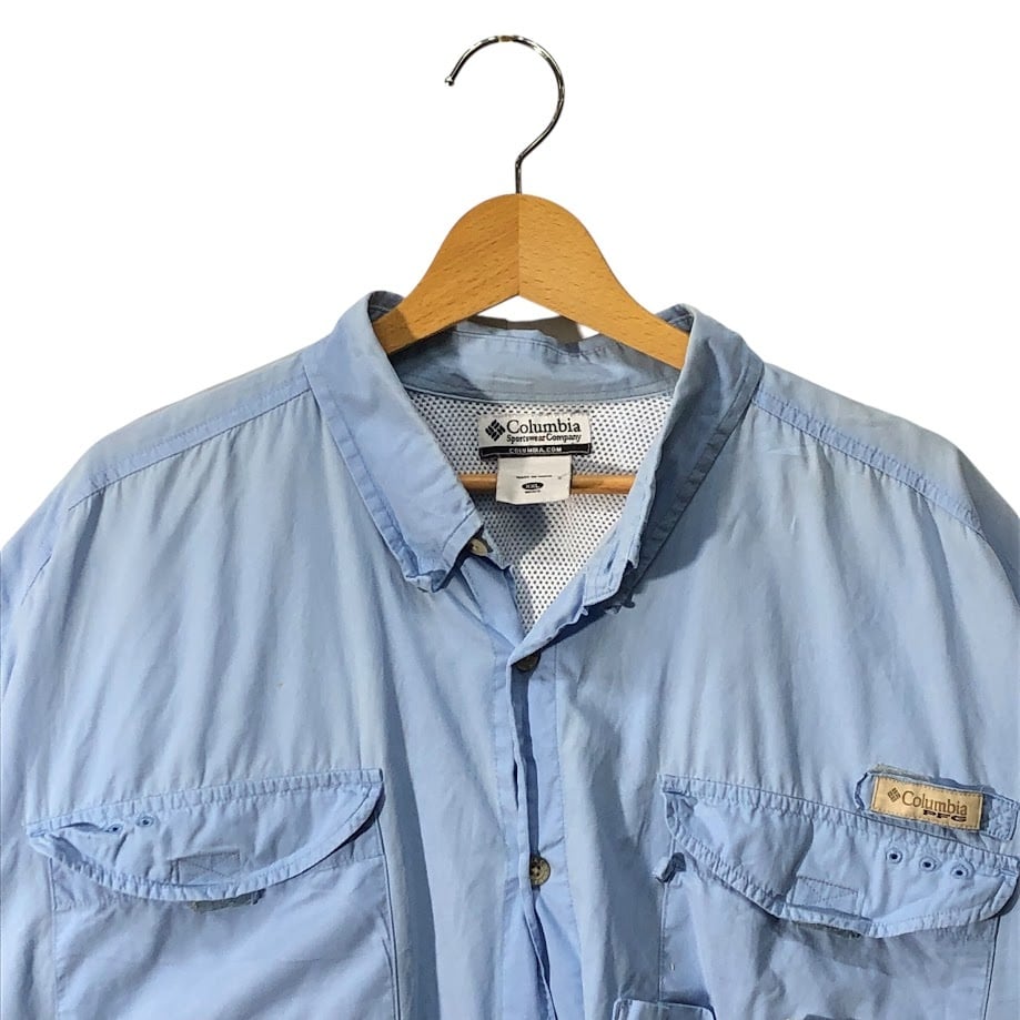 Columbia コロンビア フィッシングシャツ アウトドアシャツ PFG 半袖シャツ ボタンダウン オーバーサイズ ビッグサイズ インド製 XXLサイズ ライトブルー