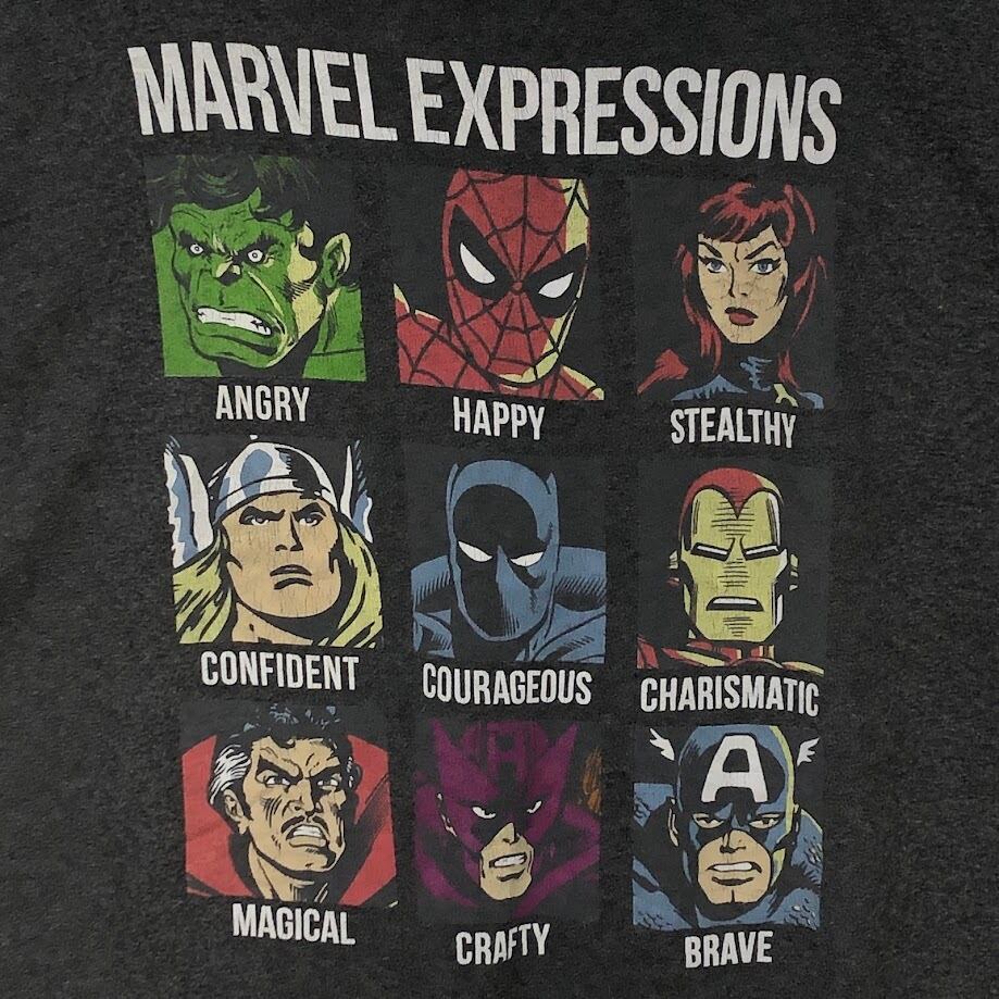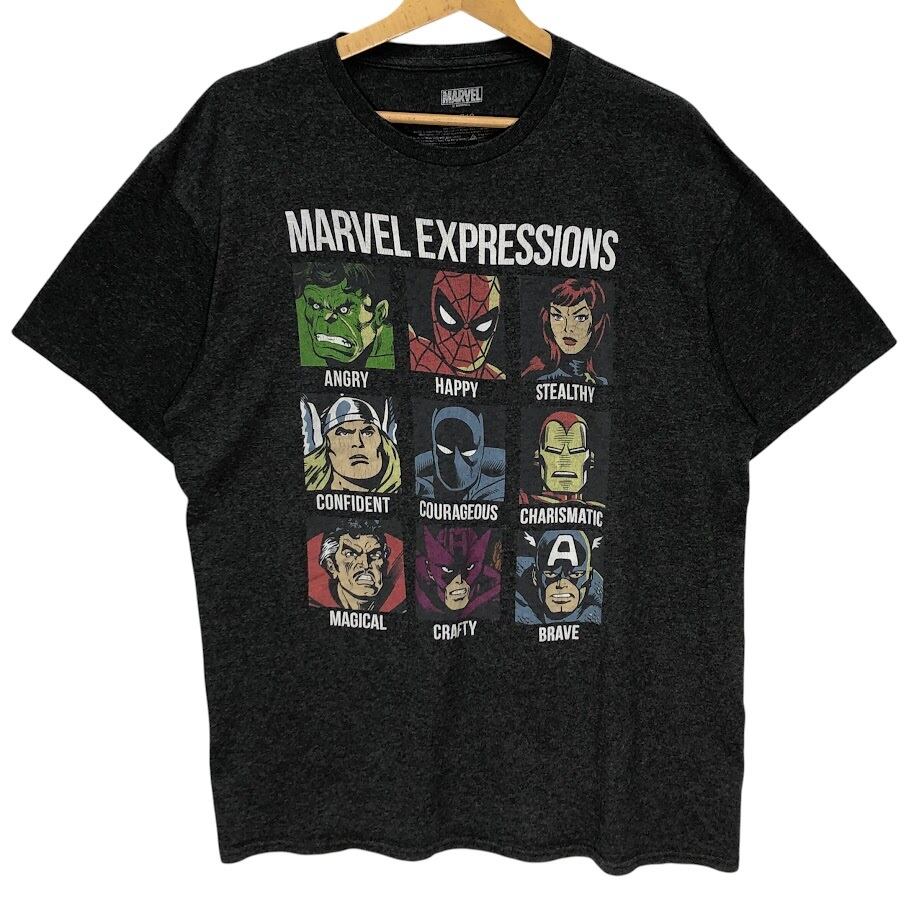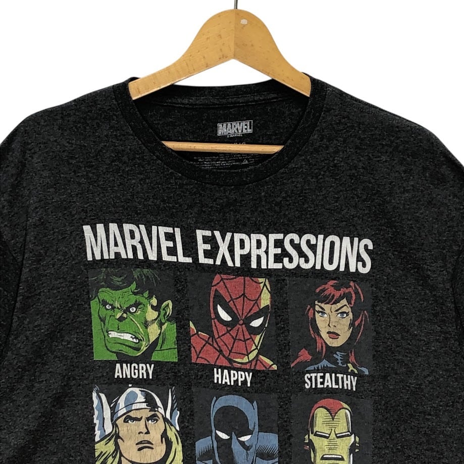MARVEL マーベル EXPRESSIOONS アベンジャーズ エクスプレッション Tシャツ 半袖 キャラクター プリント Honduras製 Lサイズ グレー