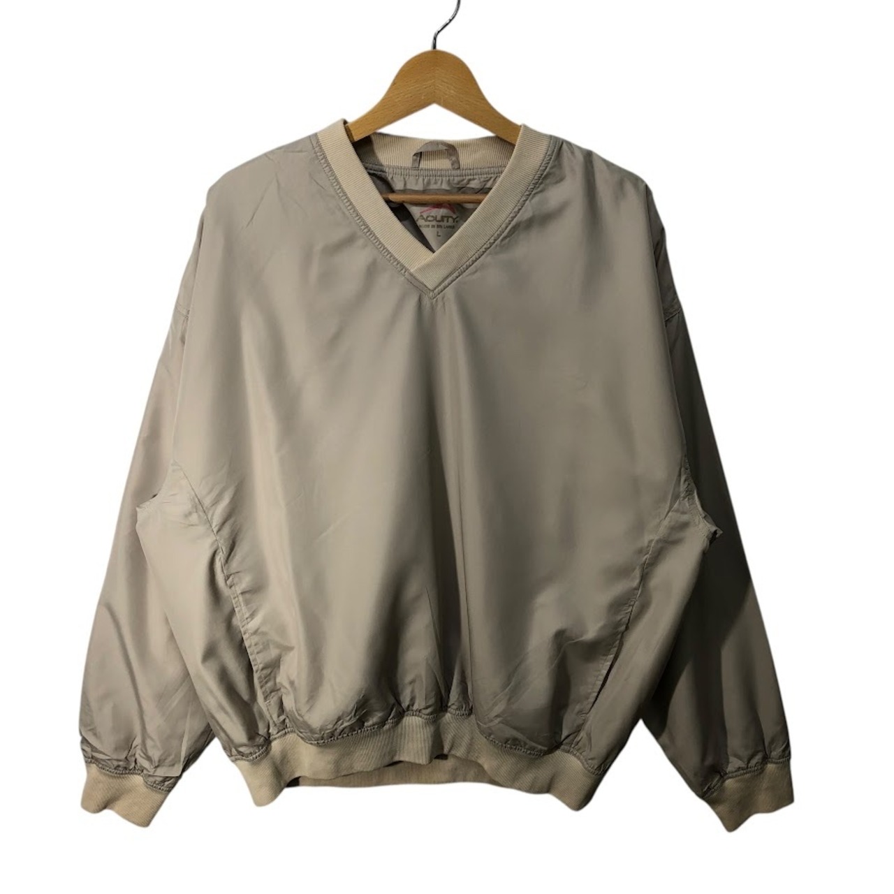 AOUITY ナイロンプルオーバー ライトアウター ナイロンジャケット 長袖 バック刺繡 スリランカ製 Lサイズ ベージュ