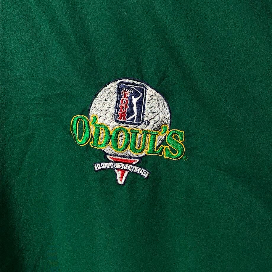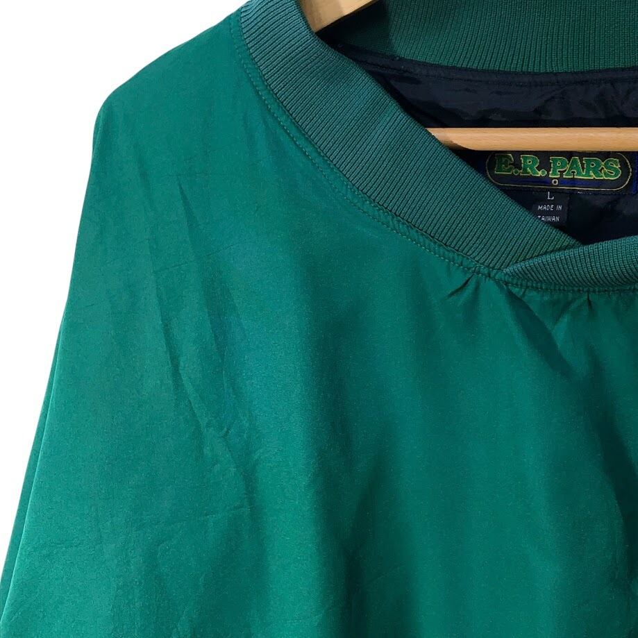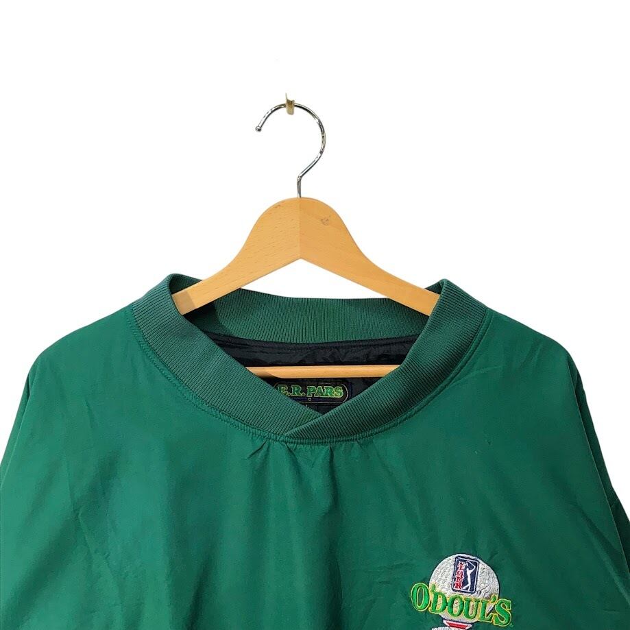E.R. PARS ナイロンプルオーバーシャツ O'Doul's オードールズ PGAツアー ゴルフ 長袖 ワンポイント刺繡 Vネック フロント刺繡 Taiwan製 Lサイズ グリーン