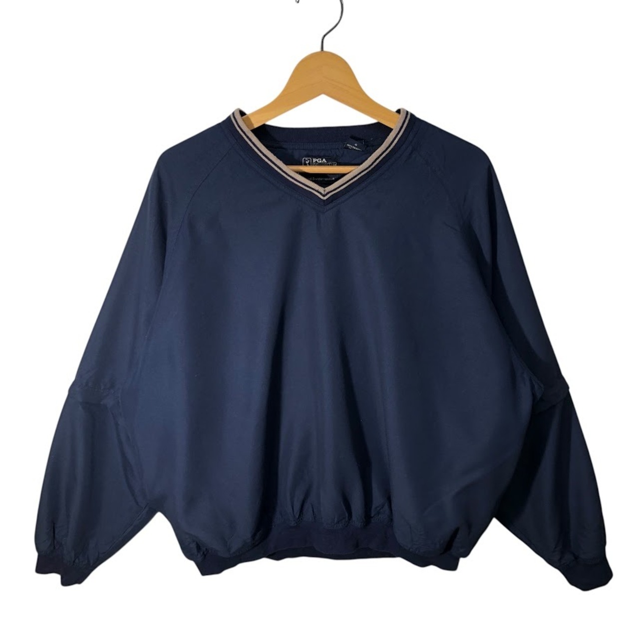 PGA TOUR wind&water resistant ナイロン ライトアウター ナイロンジャケット 長袖 バック刺繍 ベトナム製 Lサイズ ネイビー
