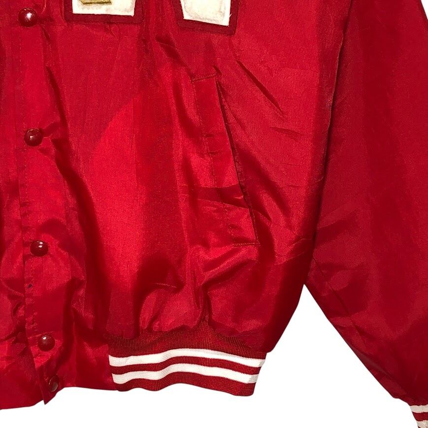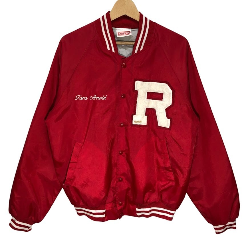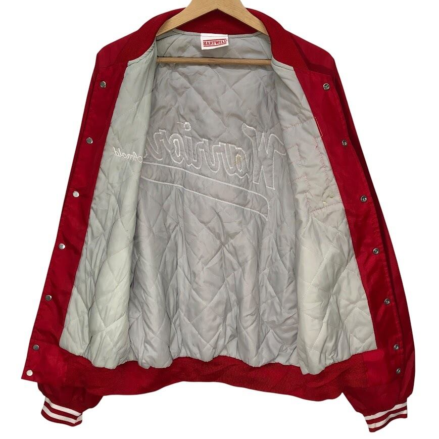商品名:90's vintage 90年代 ヴィンテージ HARTWELL ナイロンジャケット スタジャン ブルゾン 胸元刺繍 バック刺繡 ピンバッジ付 レッド
