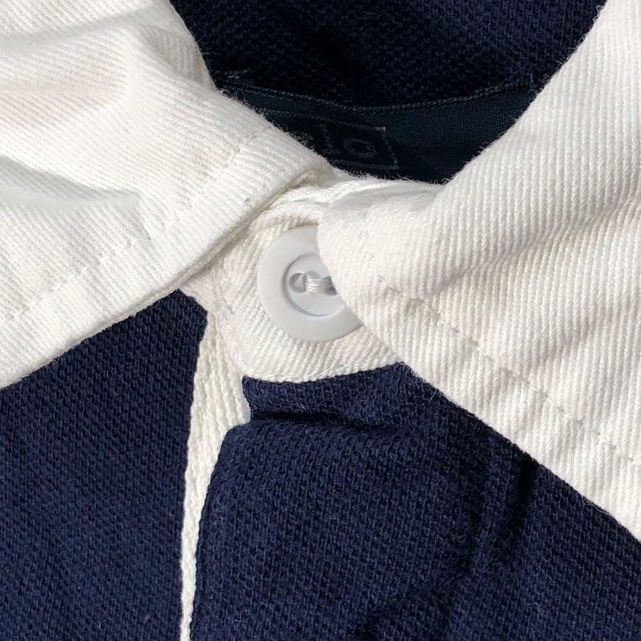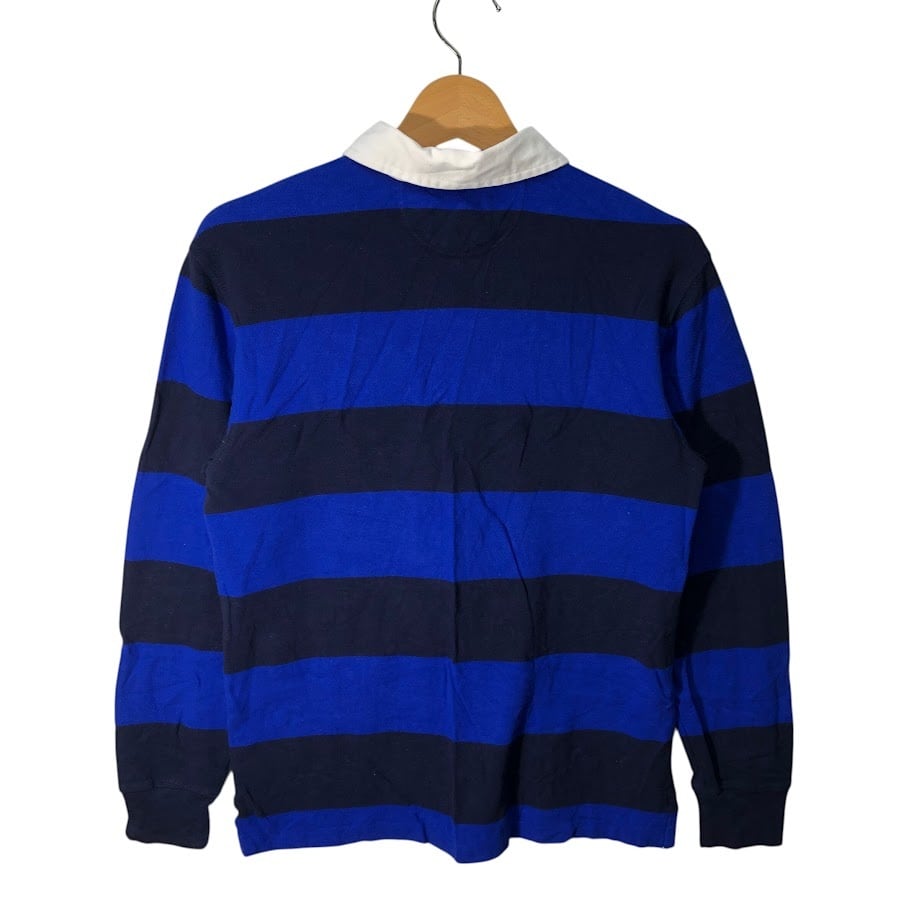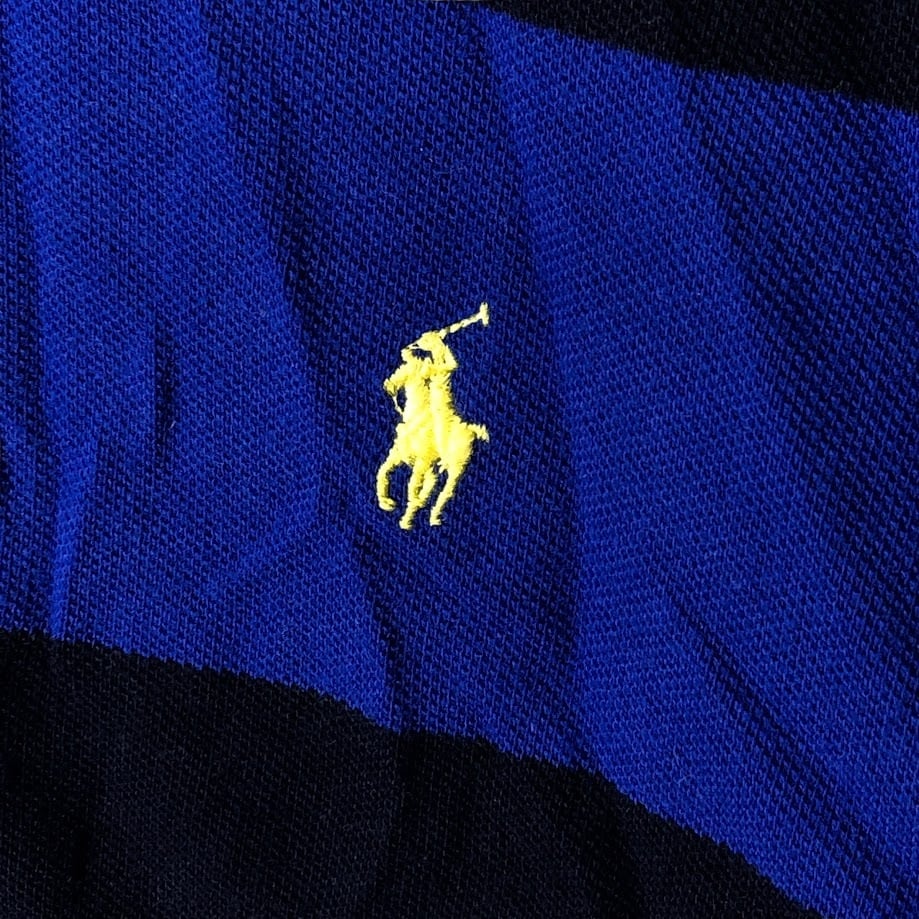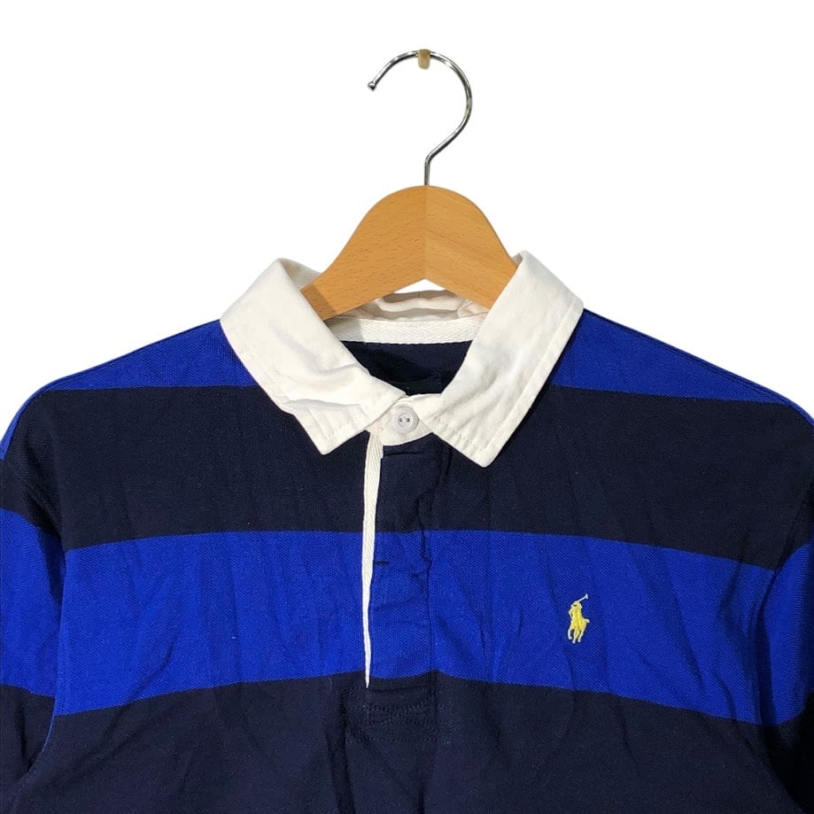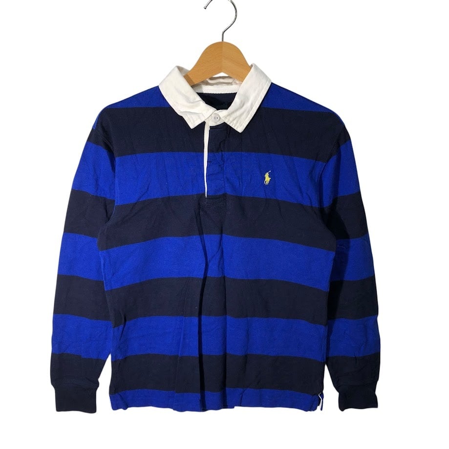 商品名:90's vintage 90年代 ヴィンテージ Polo by Ralph Lauren ポロバイラルフローレン ラガーシャツ キッズ ユース ボーダー ポニー刺繡 インド製 L 14-16サイズ ブラック ブルー