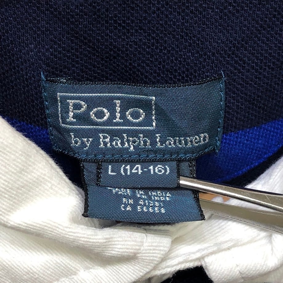 90's vintage 90年代 ヴィンテージ Polo by Ralph Lauren ポロバイラルフローレン ラガーシャツ キッズ ユース ボーダー ポニー刺繡 インド製 L 14-16サイズ ブラック ブルー