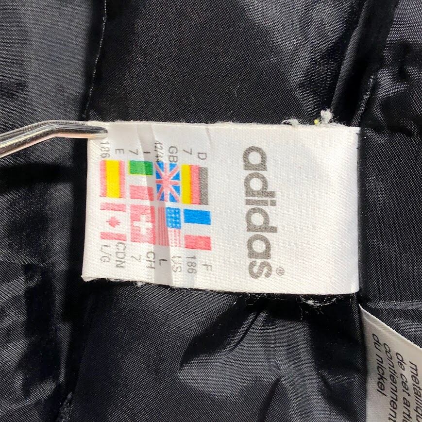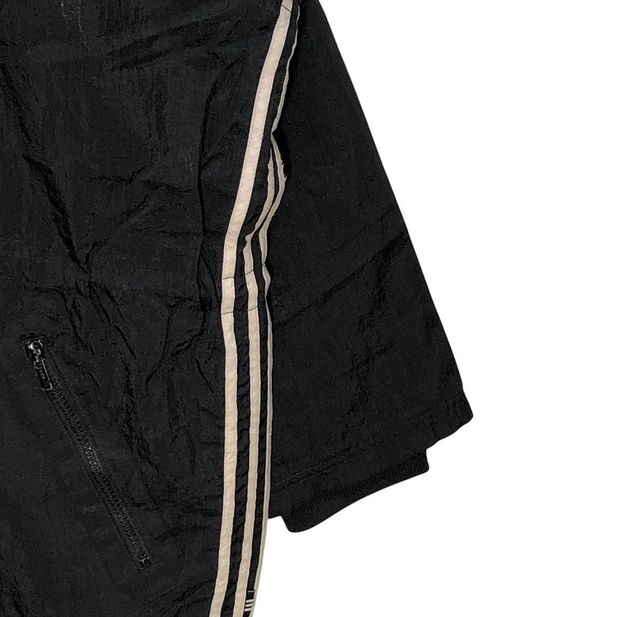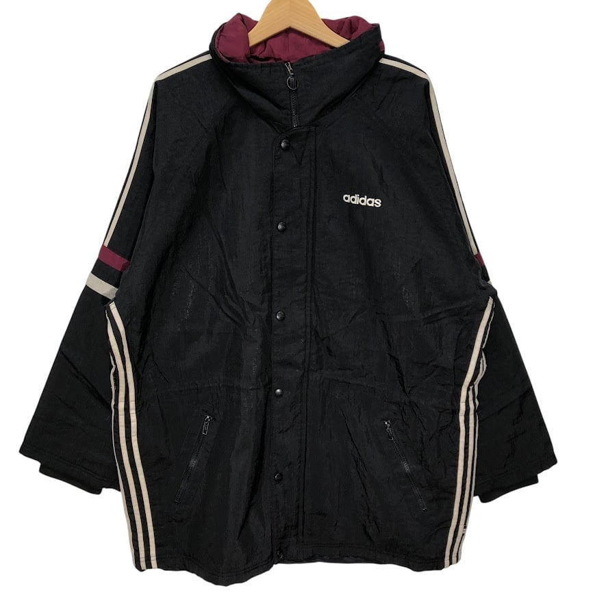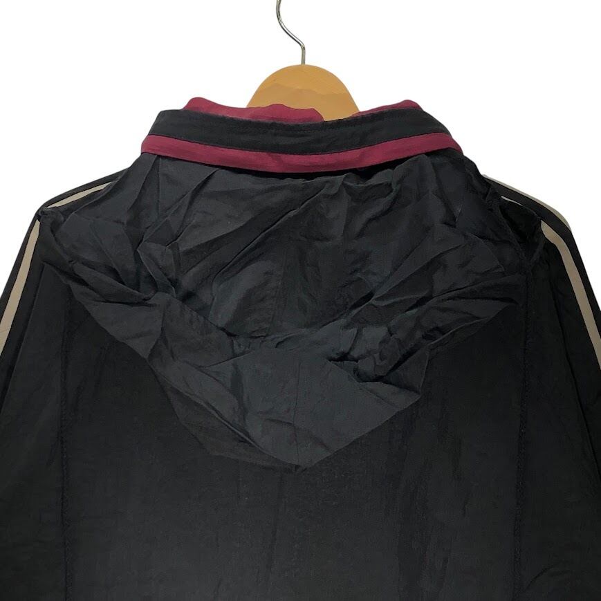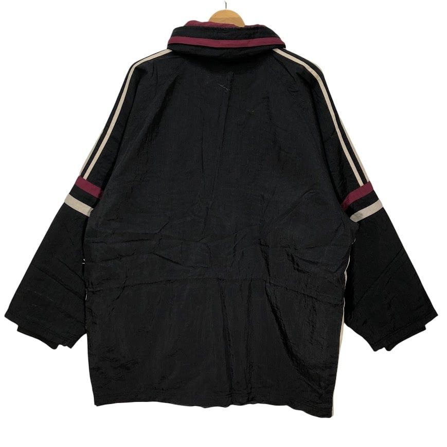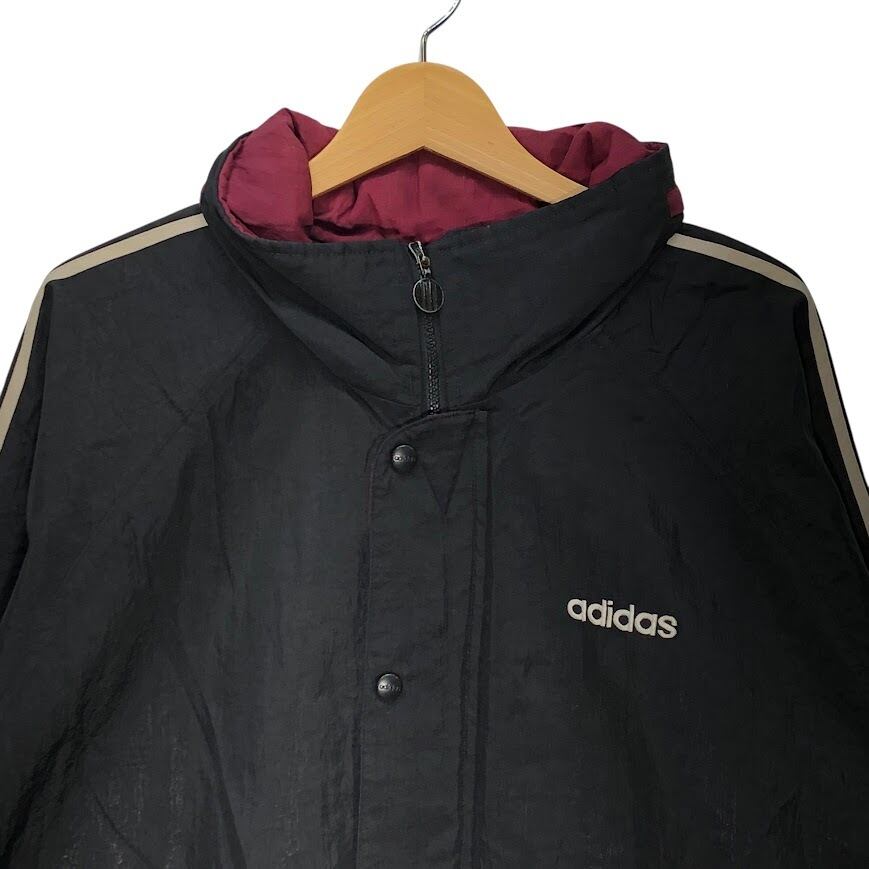 90's vintage 90年代 ヴィンテージ adidas アディダス ナイロンジャケット ミドル丈 スリーライン ウエストドローコード Taiwan製 F186サイズ ブラック ボルドー
