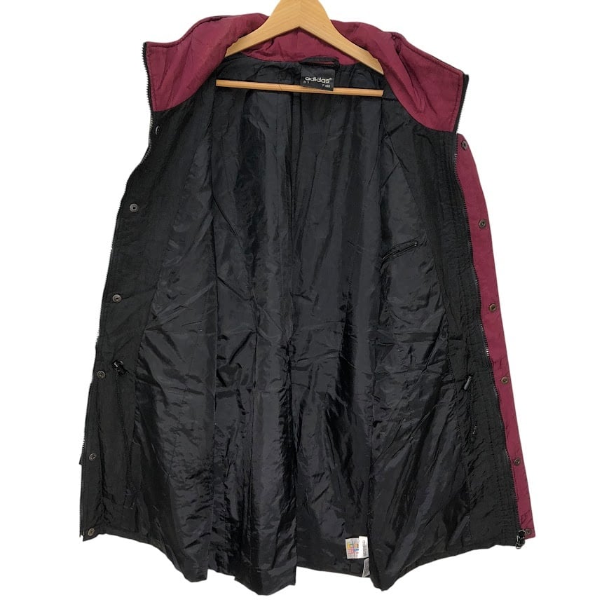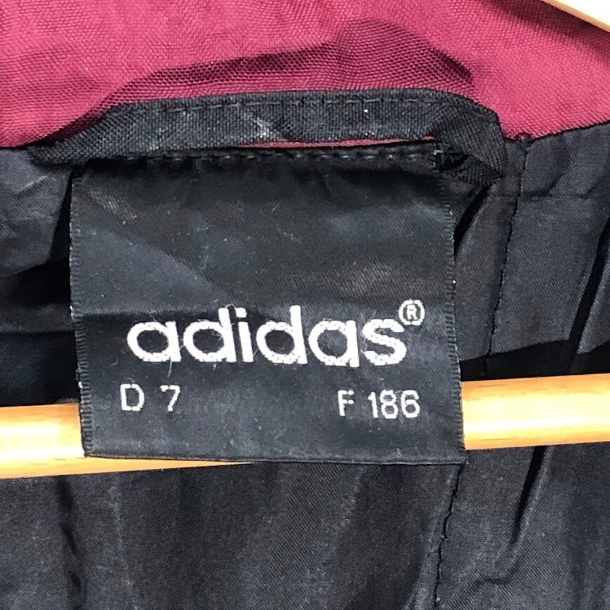 商品名:90's vintage 90年代 ヴィンテージ adidas アディダス ナイロンジャケット ミドル丈 スリーライン ウエストドローコード Taiwan製 F186サイズ ブラック ボルドー