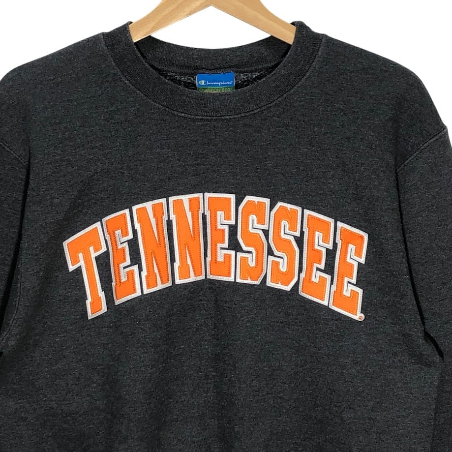 Champion /チャンピオン 00年代/00’s ヴィンテージ ECO FLEECE TENNESSEE テネシー大学 カレッジ刺繡 スウェット トレーナー 長袖 フロント袖刺繍 クルーネック Nicaragua製 Sサイズ ダークグレー