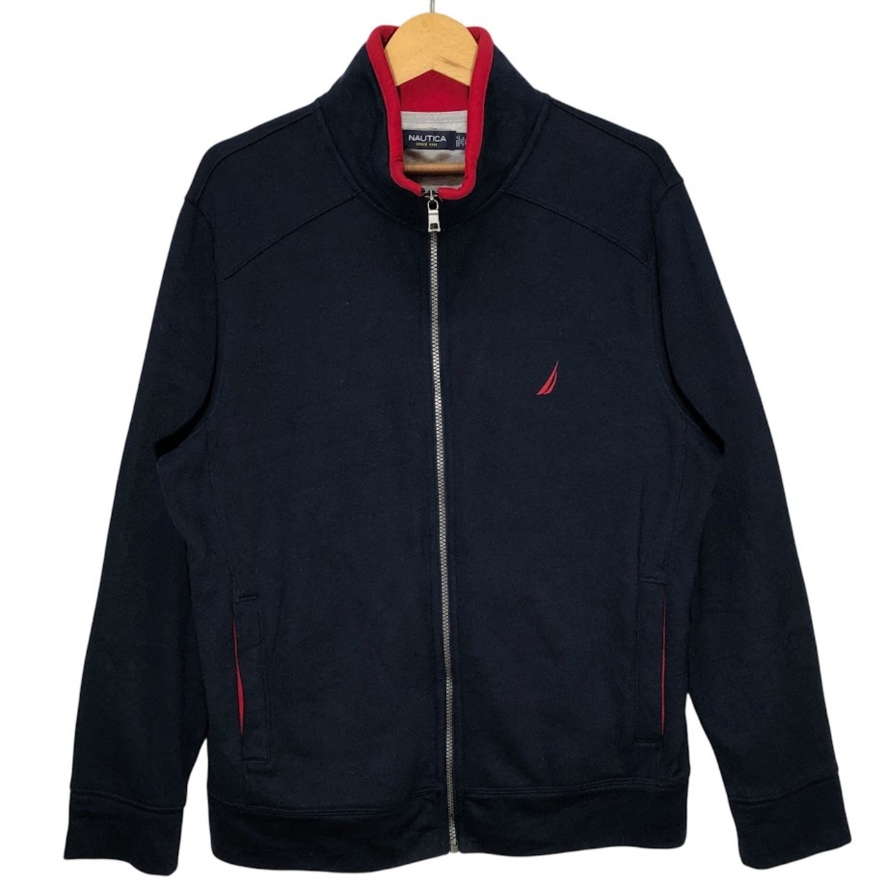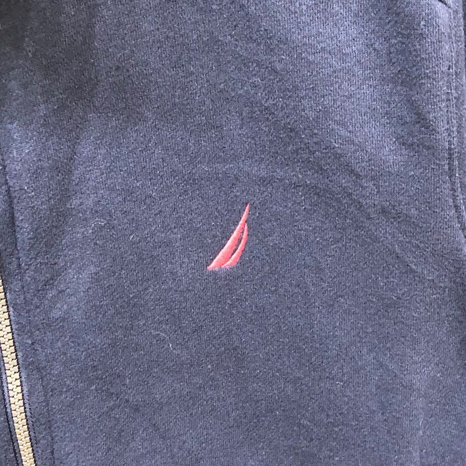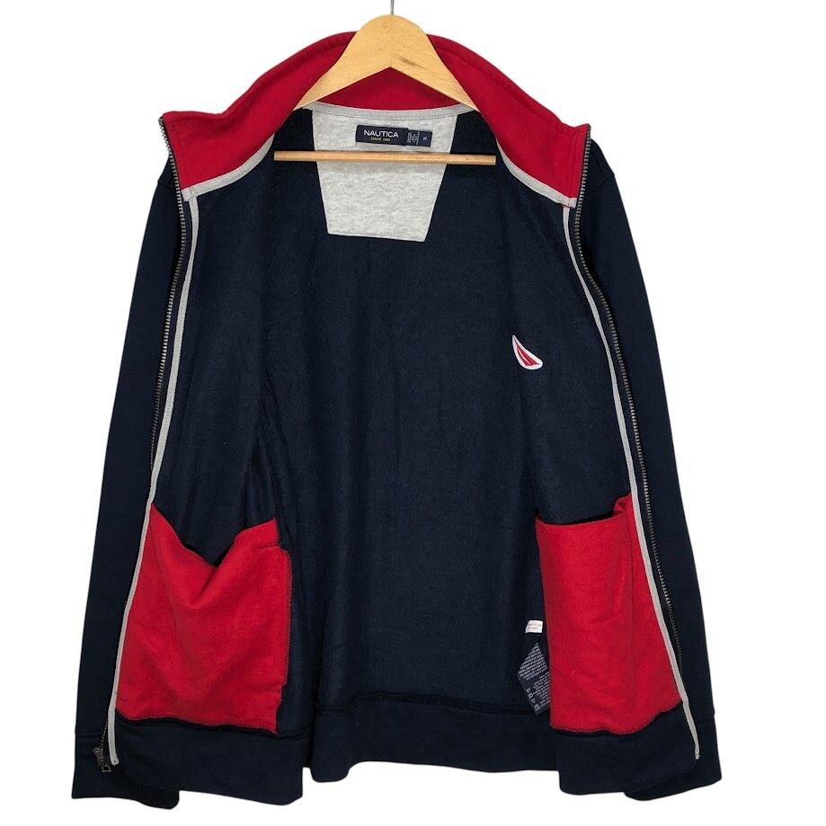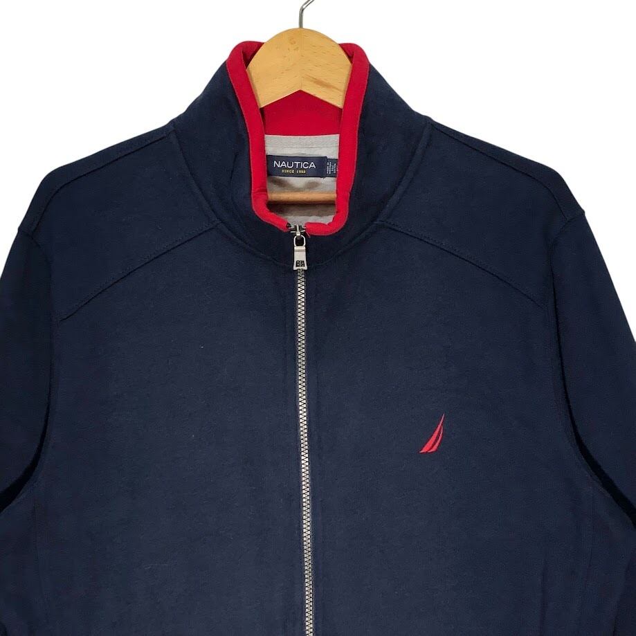 NAUTICA/ノーティカ 裏起毛 フルジップ ジップアップ ライトアウター 長袖 ワンポイント刺繡 Vietnam製 Mサイズ ネイビー/レッド