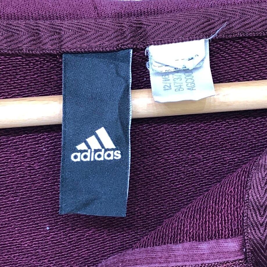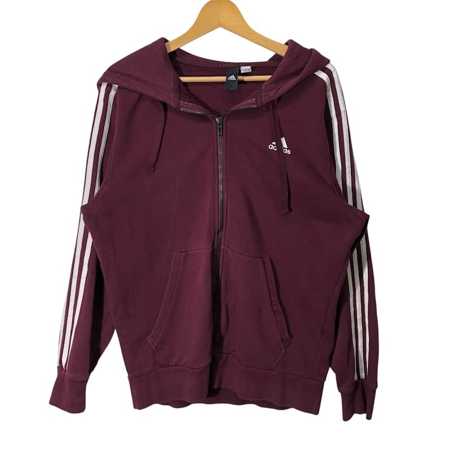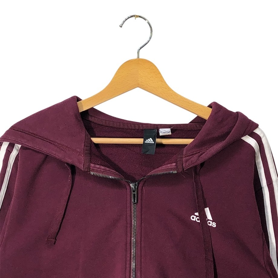 adidas アディダス フルジップ ジップアップ スリーライン パーカー フーディー 長袖 ワンポイントプリント ワインレッド
