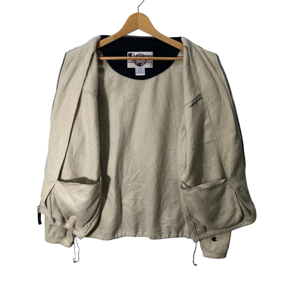 商品名:Champion チャンピオン フリースジャケット フルジップ ジップアップ ライトアウター 長袖 ドローコード ワンポイント刺繡 Vietnam製 Mサイズ ホワイト